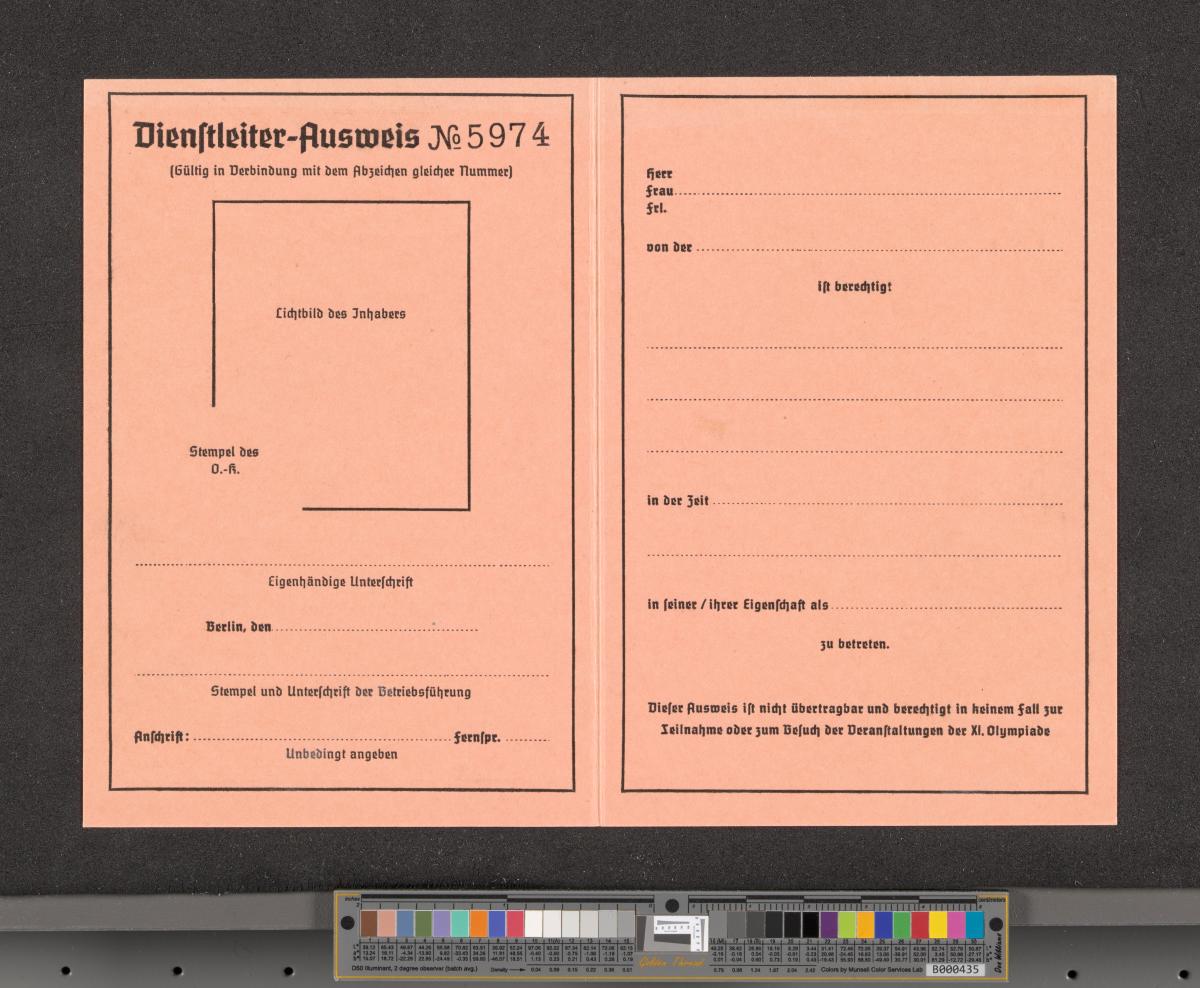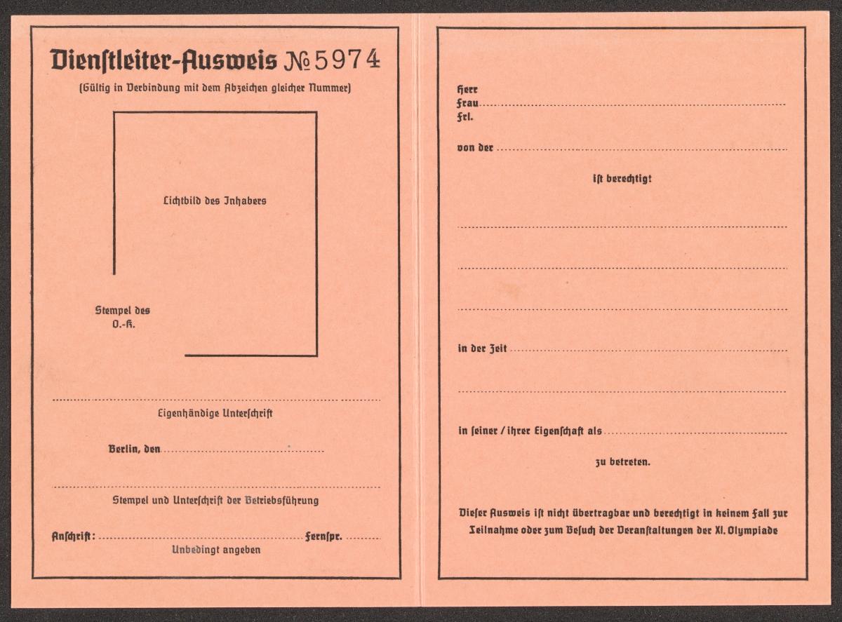 Berlin 1936, carte d'accréditation pour le chef de service.