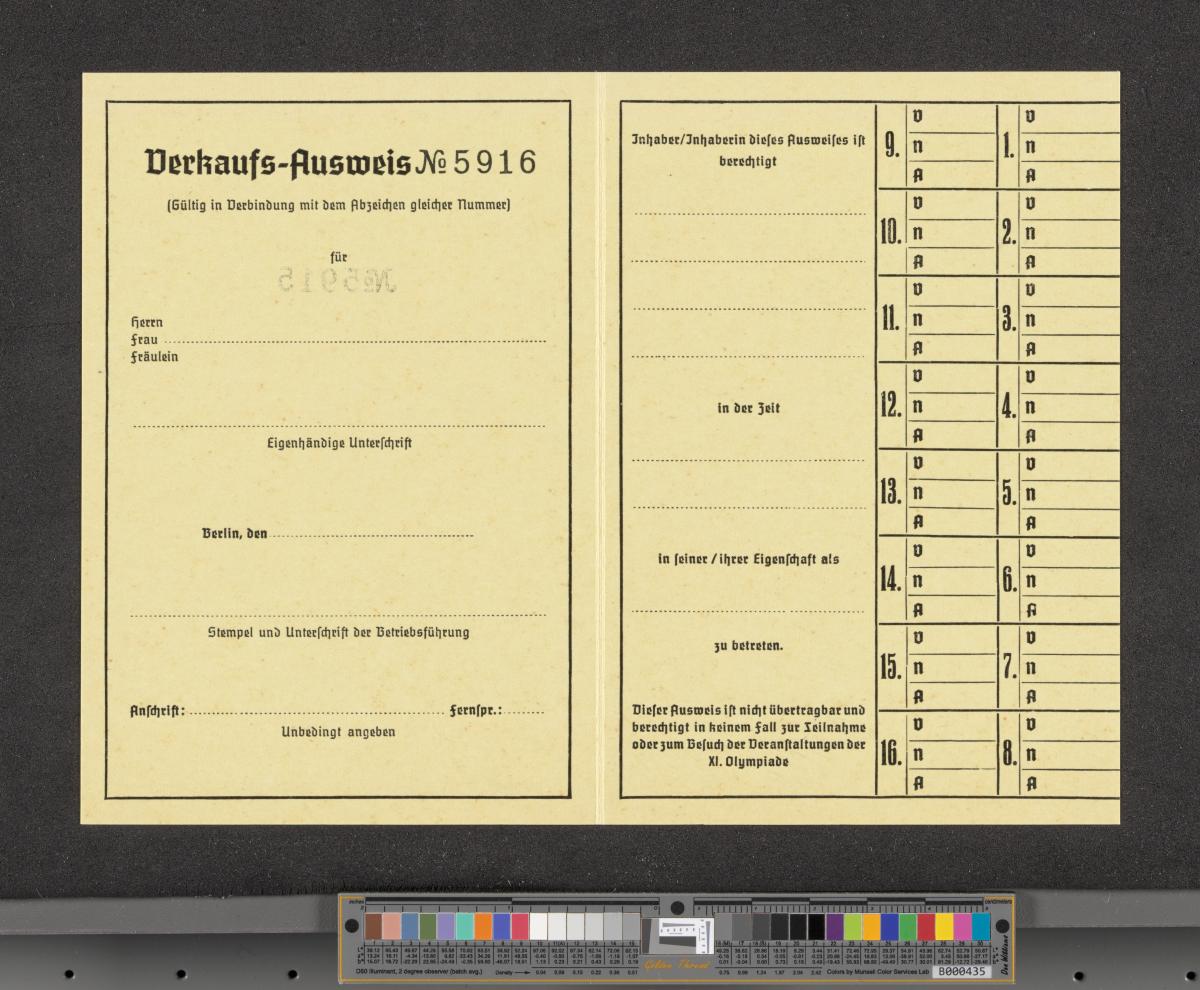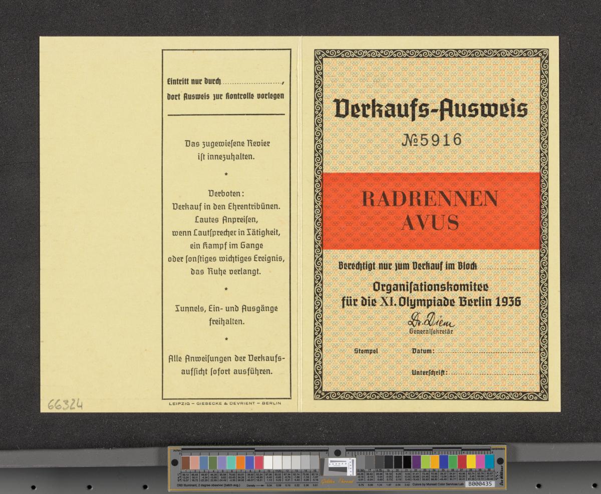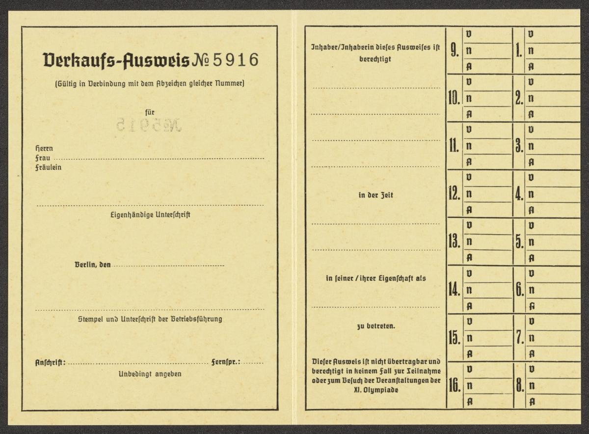 Berlin 1936, carte d'accréditation pour la vente sur le circuit de l'AVUS.