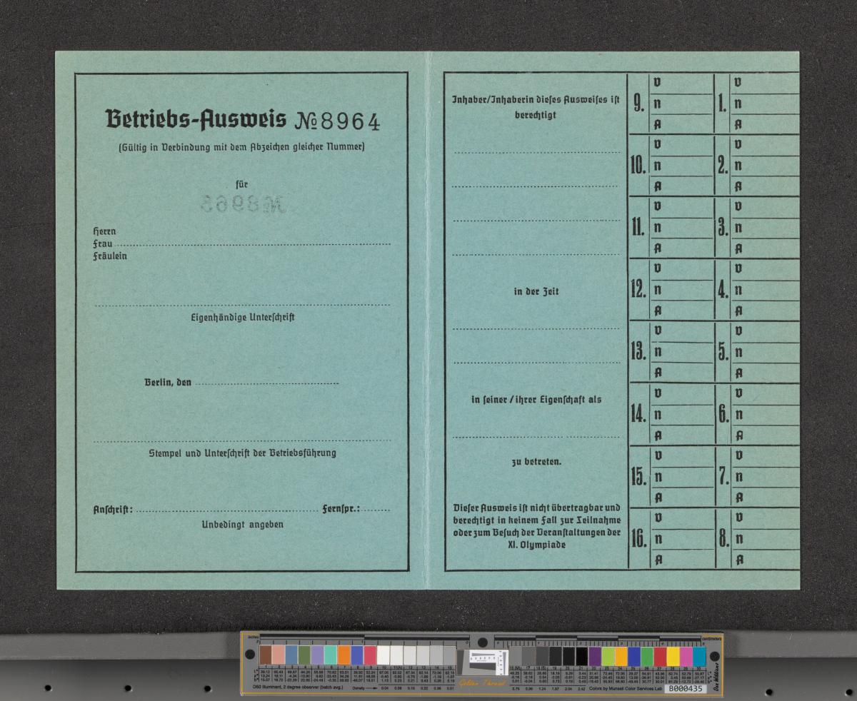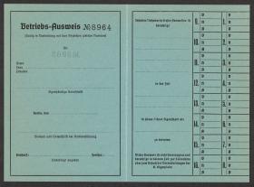 Carte d'accréditation vierge pour les chargés des opérations, texte: "Betriebs-Ausweis / N° 8964 / RADRENNEN / AVUS".
