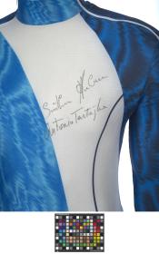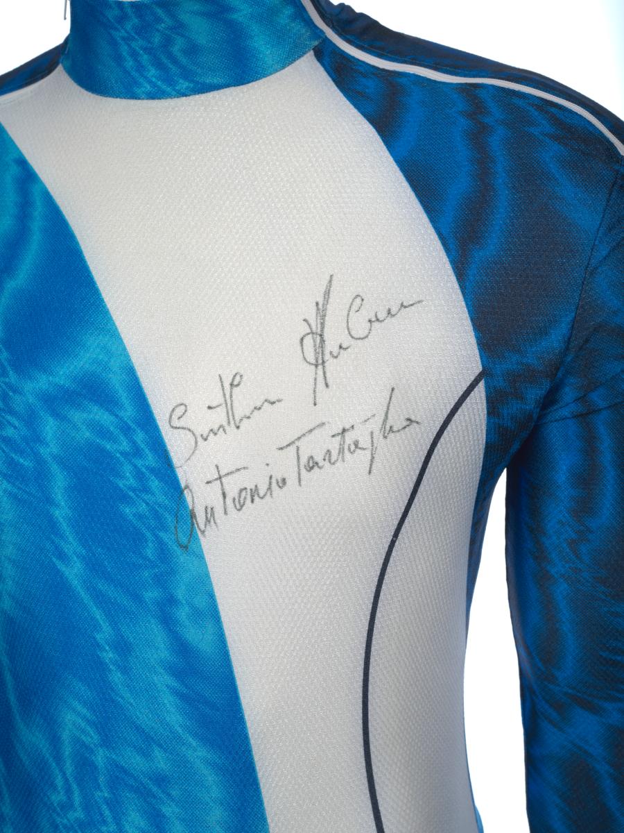 Nagano 1998, combinaison de bobsleigh de l'équipe italienne dédicacée par Günther HUBER et Antonio TARTAGLIA (ITA).