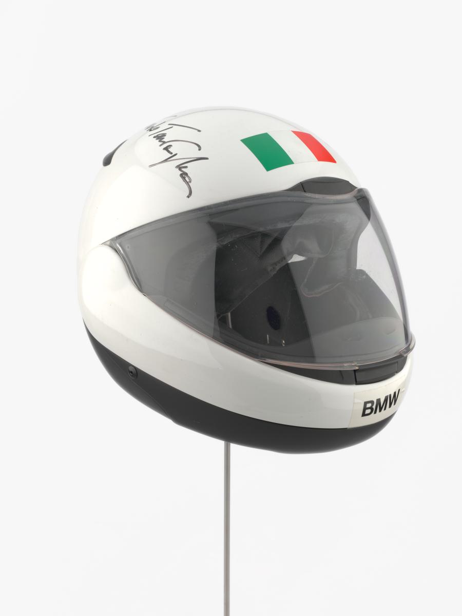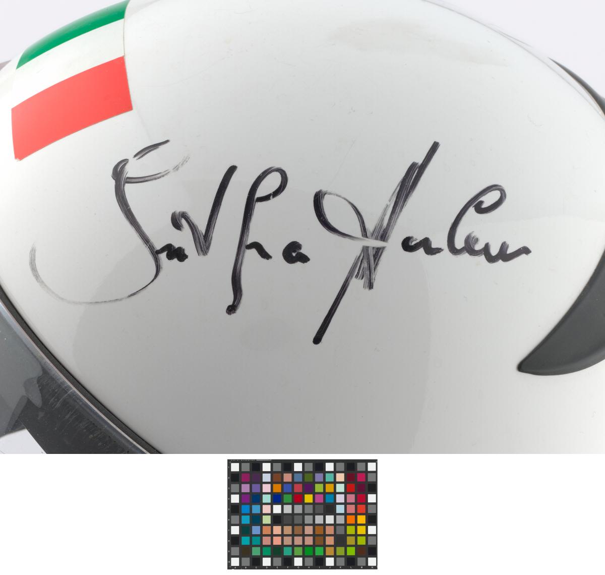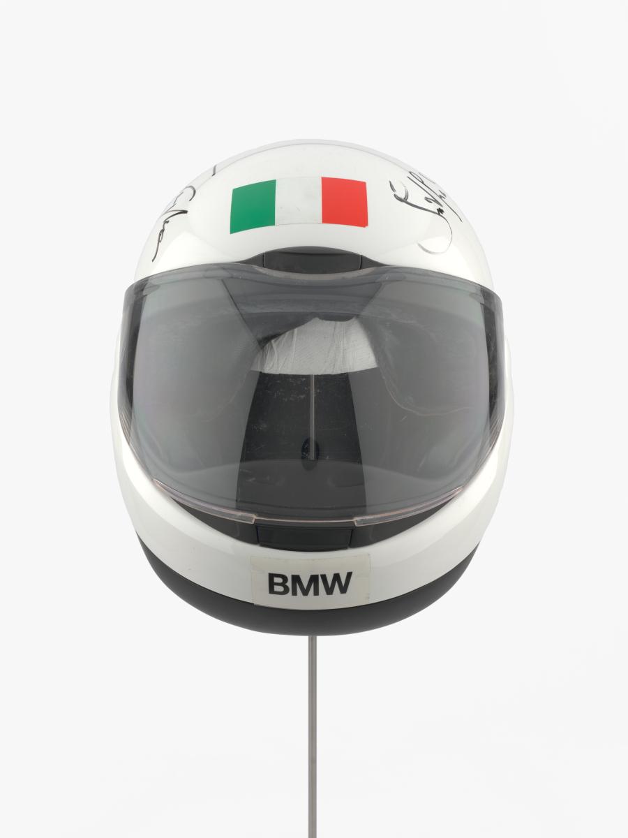 Nagano 1998, casque de bob de l'équipe italienne dédicacée par Günther HUBER et Antonio TARTAGLIA (ITA), champions olympiques de bob à deux.