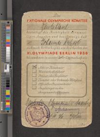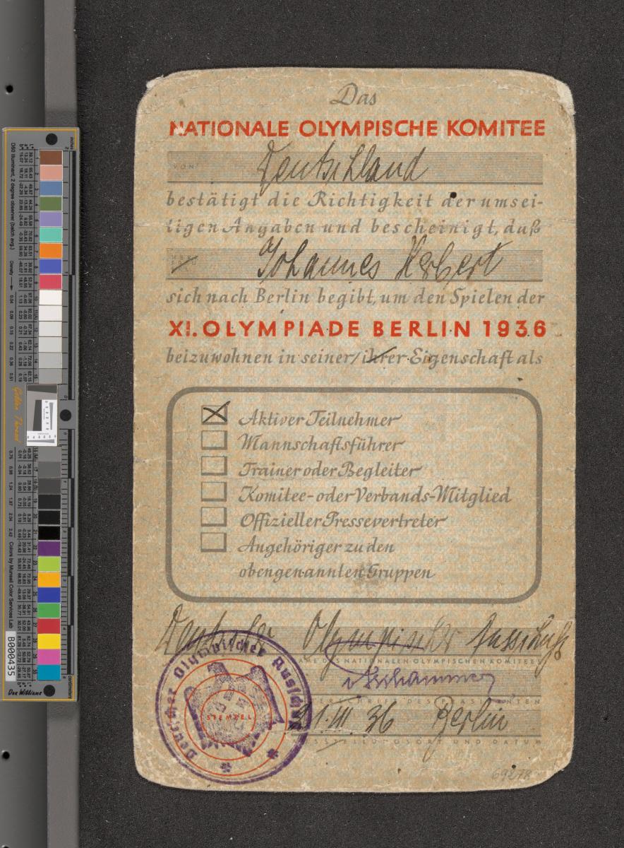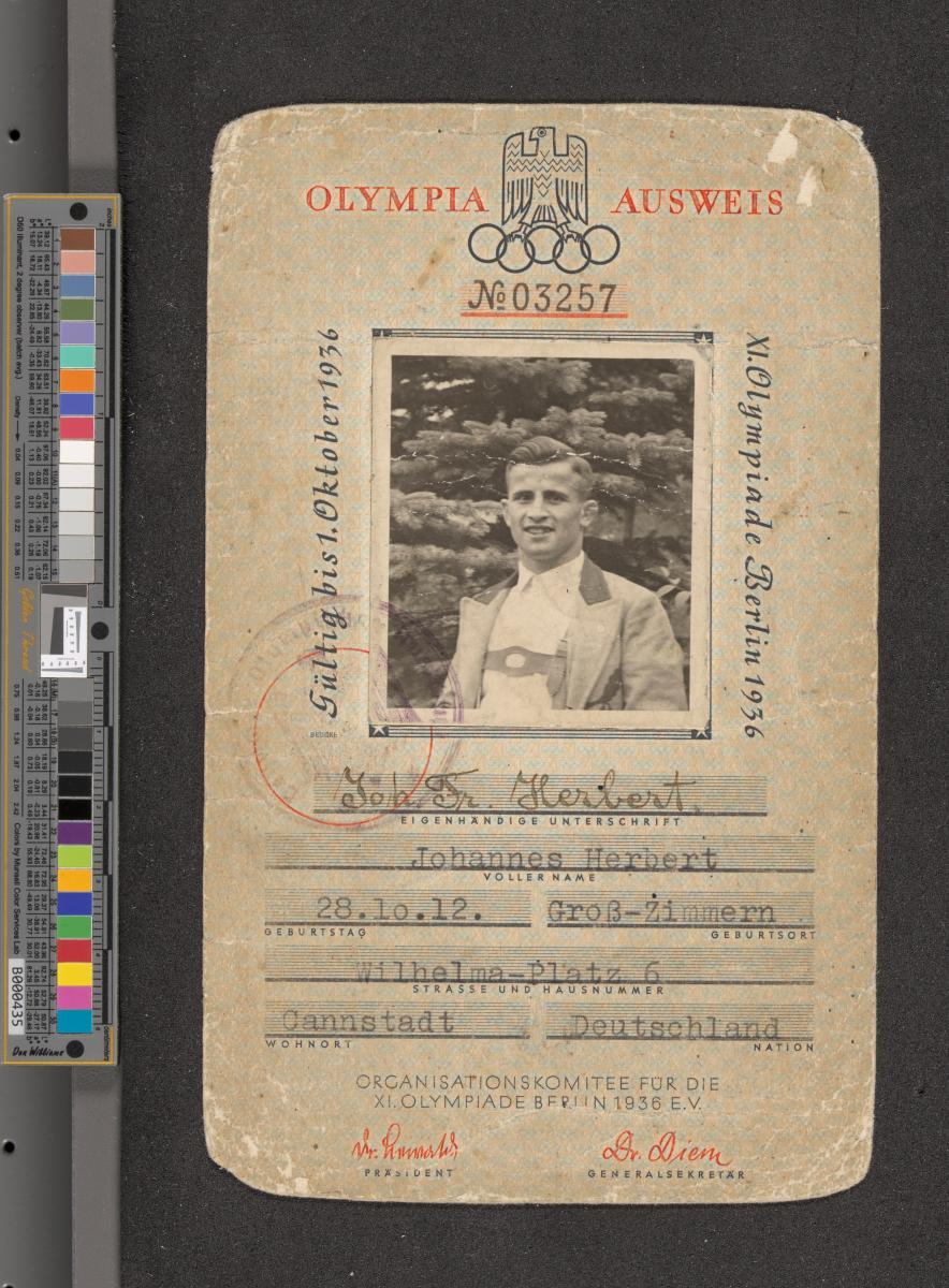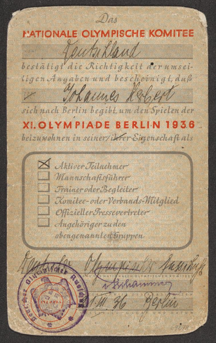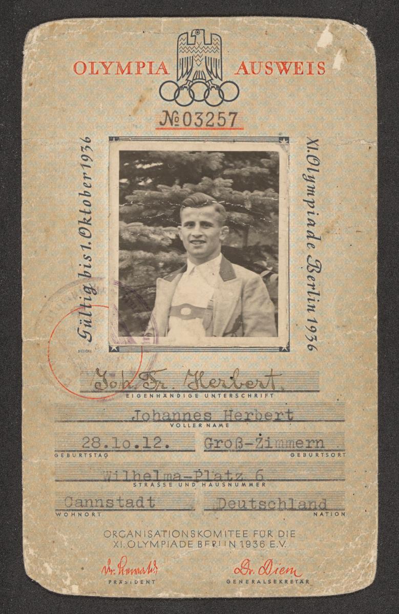 Berlin 1936, carte d'identité de Johannes HERBERT (GER).