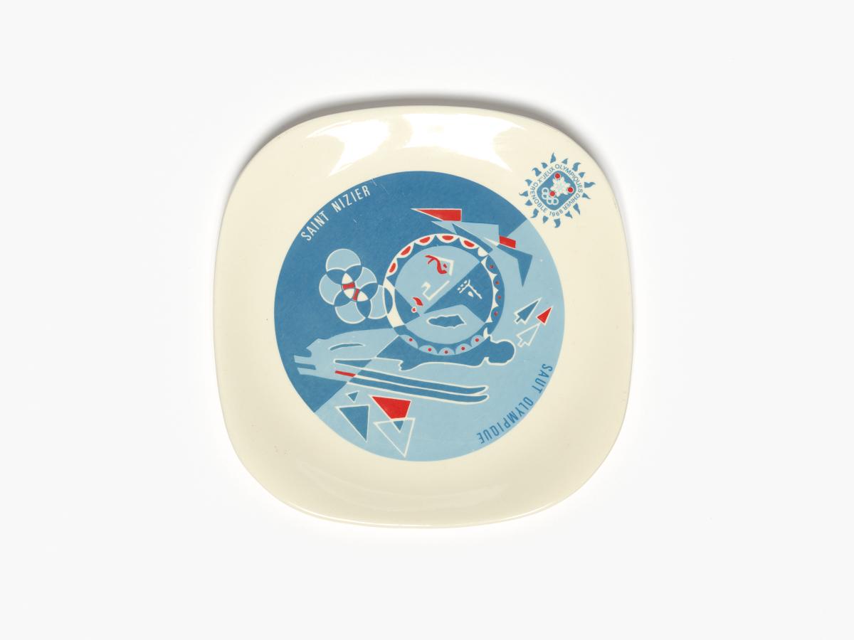 Grenoble 1968, assiette avec le site olympique de saut à skis de Saint Nizier.