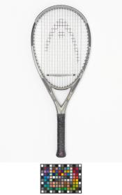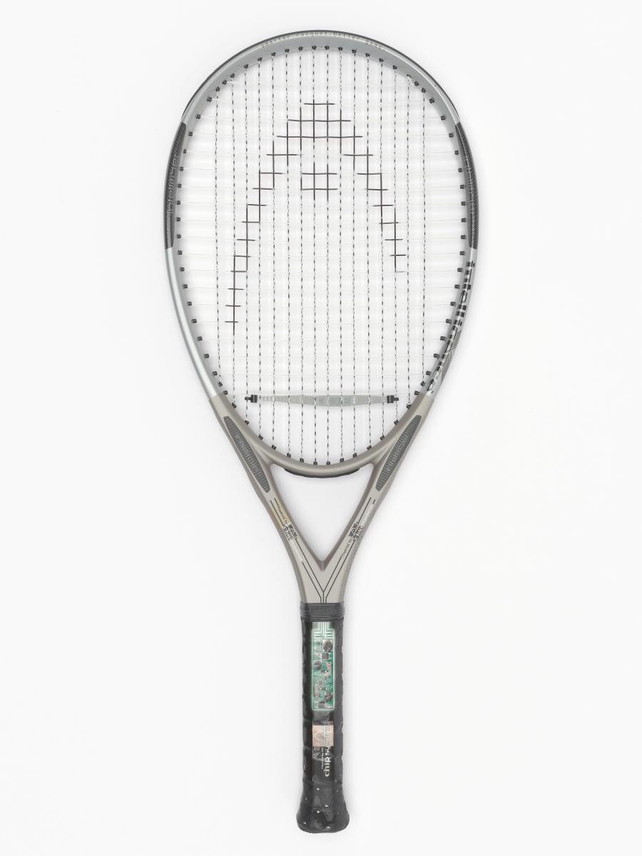 Raquette dotée d'un réseau de fibre créée à partir d'un matériau piézo-électrique qui transforme l'énergie mécanique produite par la balle en une réponse électrique qui rigidifie la raquette.
