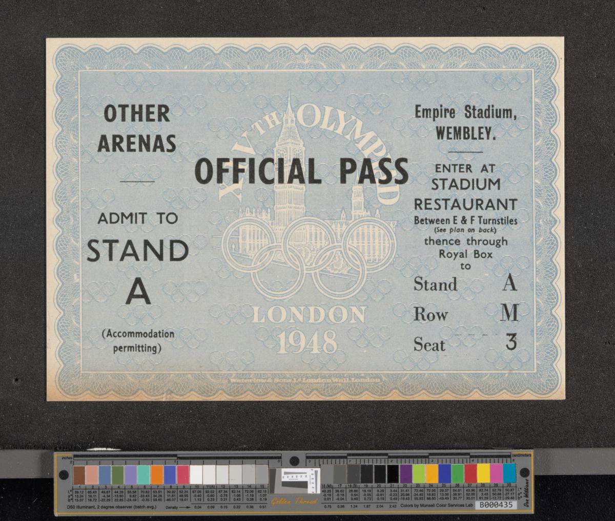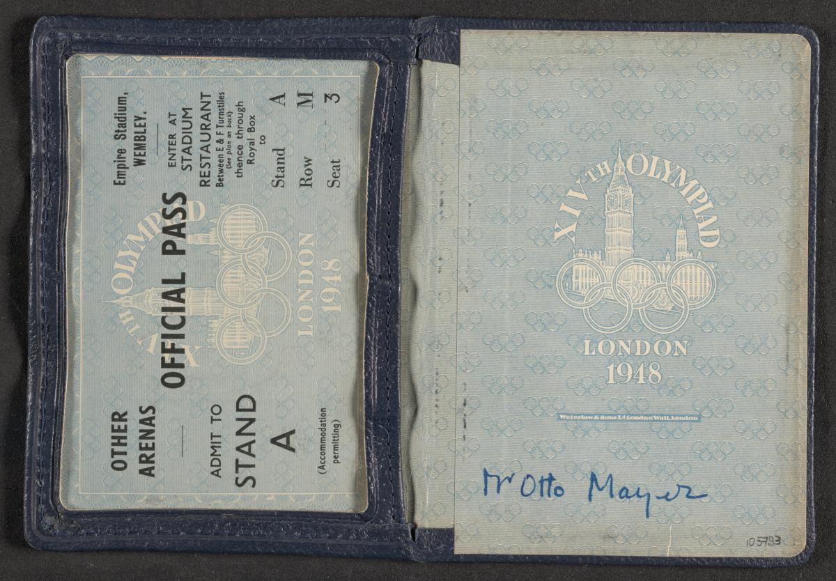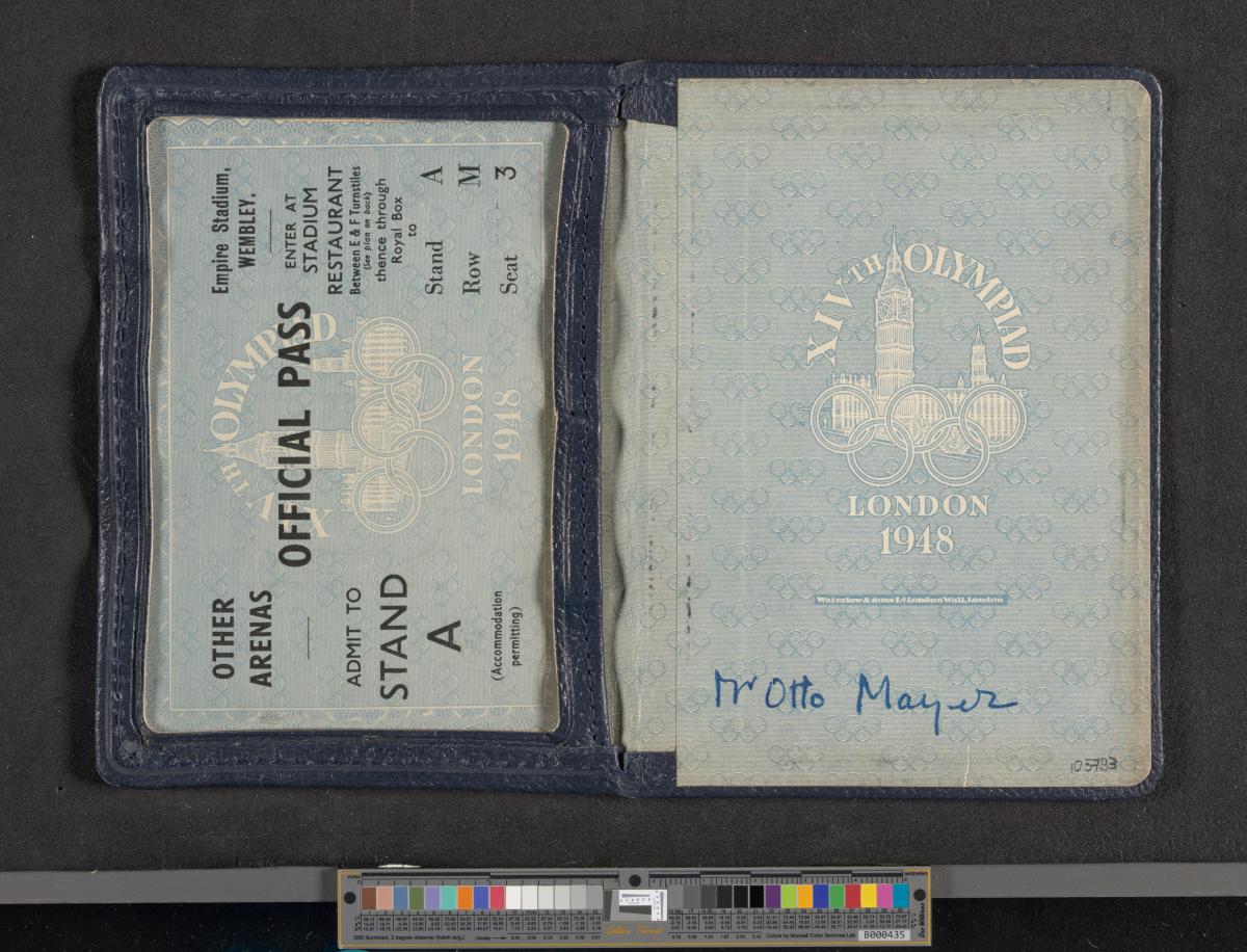 Londres 1948, laissez-passer pour le stand A délivré à Otto Mayer, chancelier du CIO.