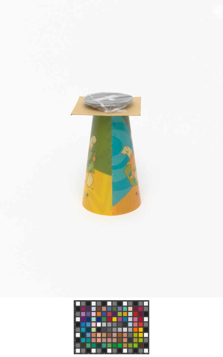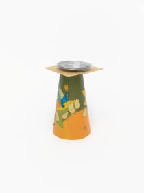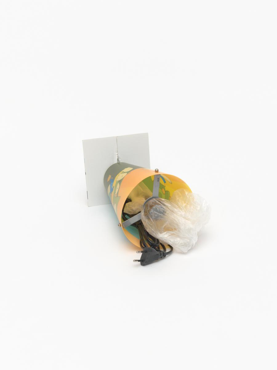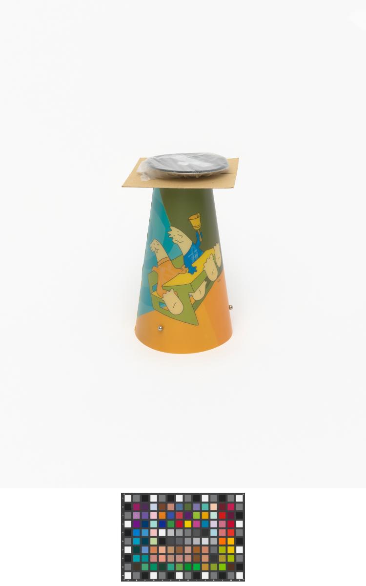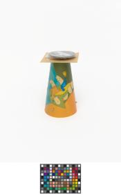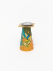 Lampe de forme conique avec un pied en métal.