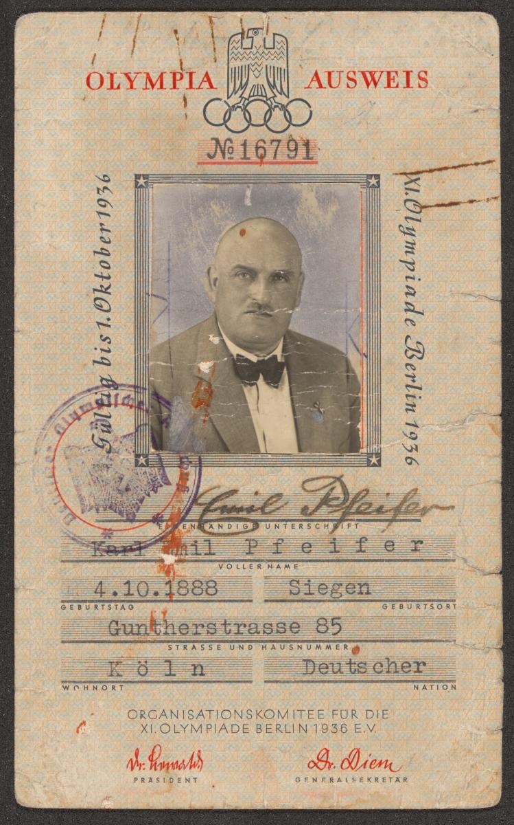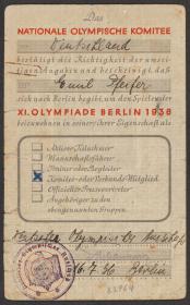 Berlin 1936, carte d'identité délivrée à Karl Emil PFEIFER (GER).