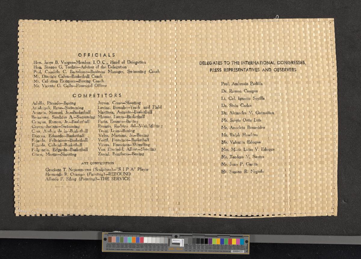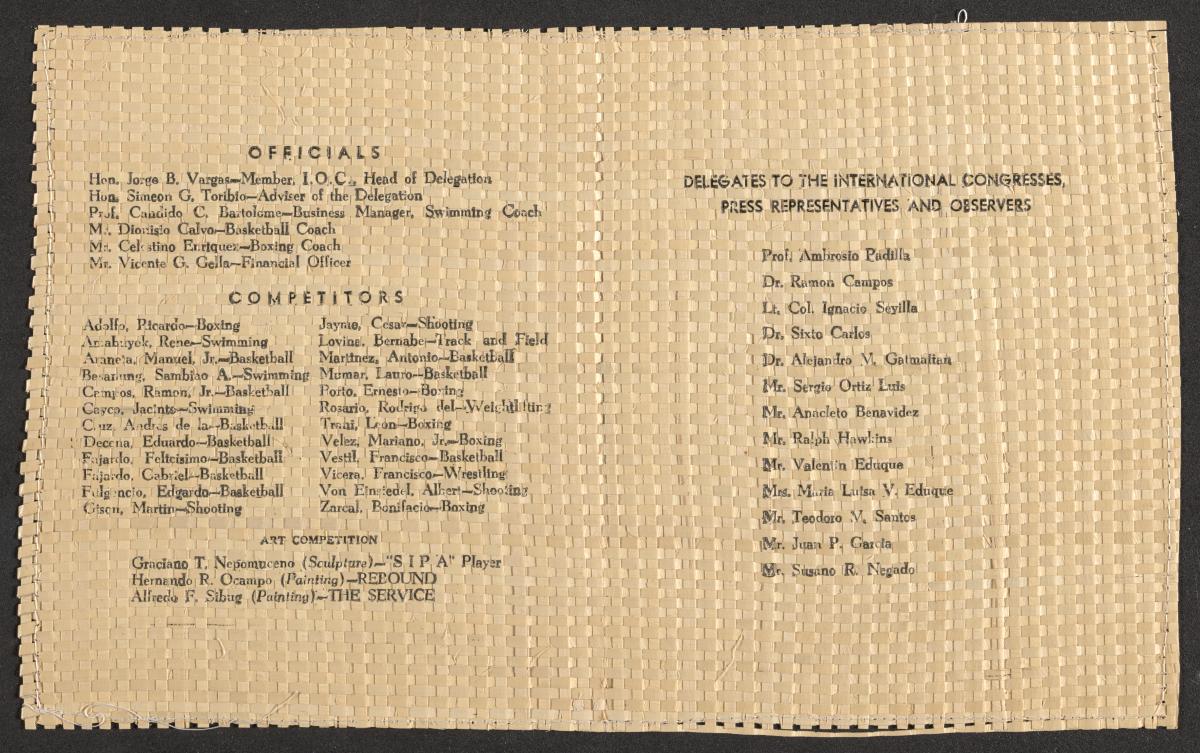 Comprend la liste des officiels, des athlètes, des compétiteurs de Festival des arts et les délégués de la presse.