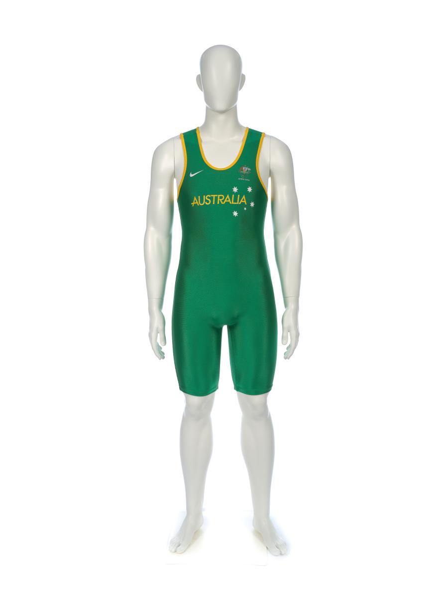 Athènes 2004, combinaison de l'équipe masculine australienne d'haltérophilie.