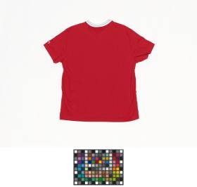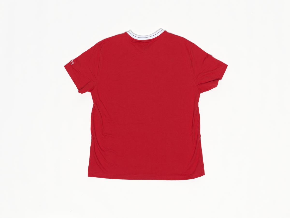 T-shirt rouge à manches courtes et col en V. Sur l'avant se trouve une couronne de laurier surmontant l'emblème du CNO des Etats-Unis. Taille XXL.