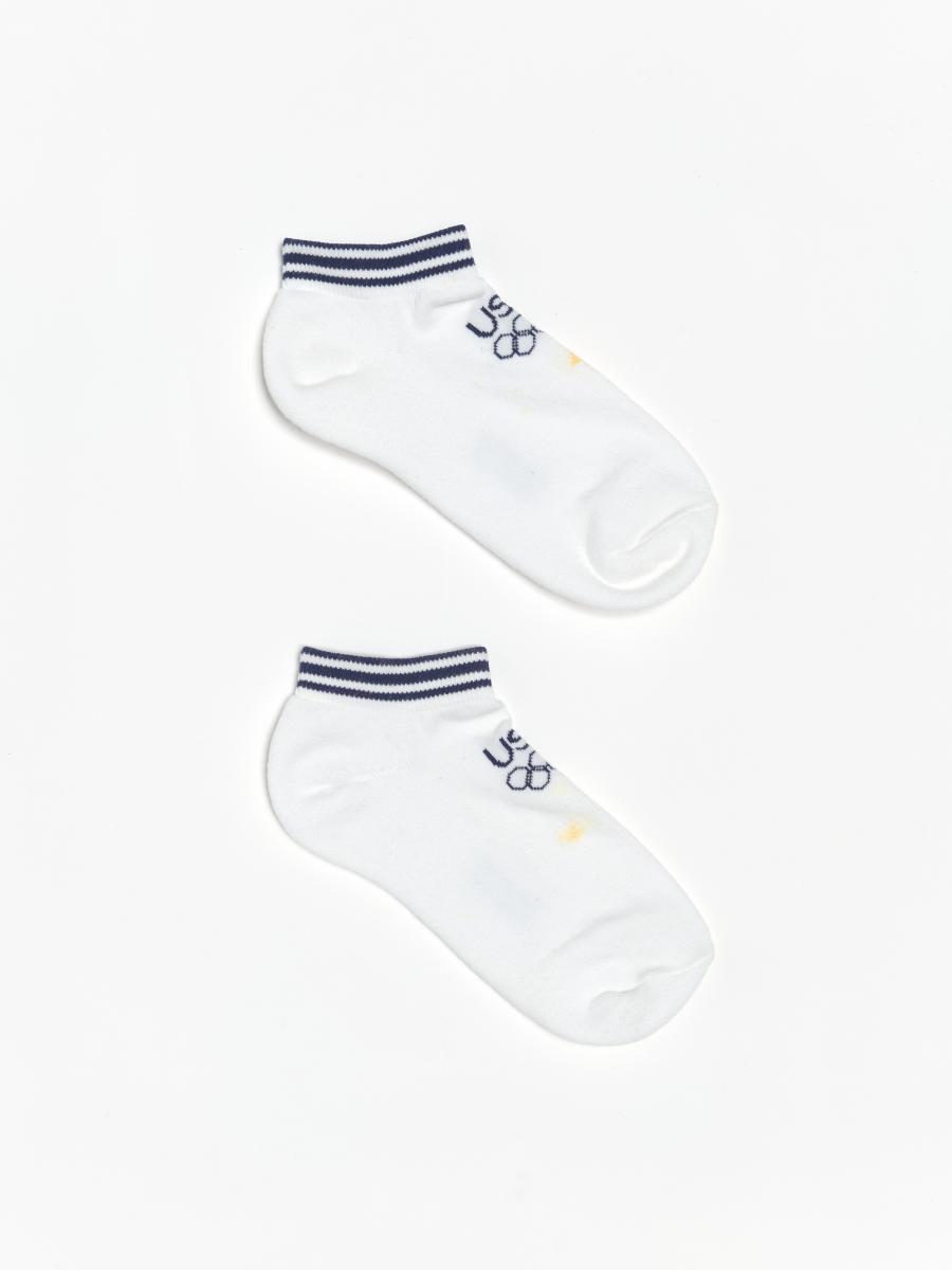 Chaussettes blanches et bleues avec l'emblème du CNO des Etats-Unis.