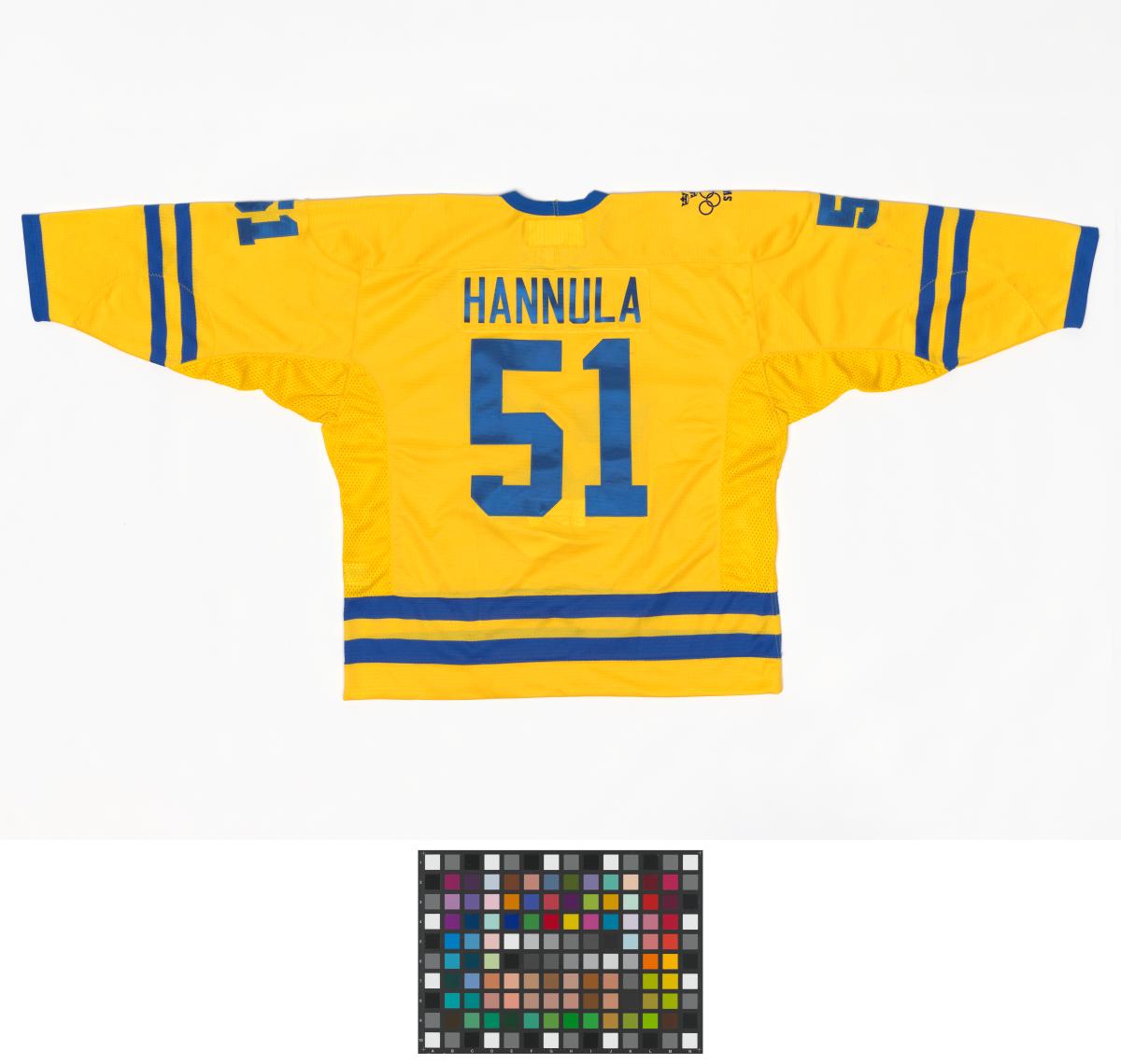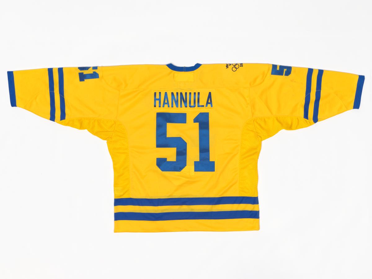 Turin 2006, maillot de hockey sur glace de Mika HANNULA (SWE), champion olympique avec son équipe.