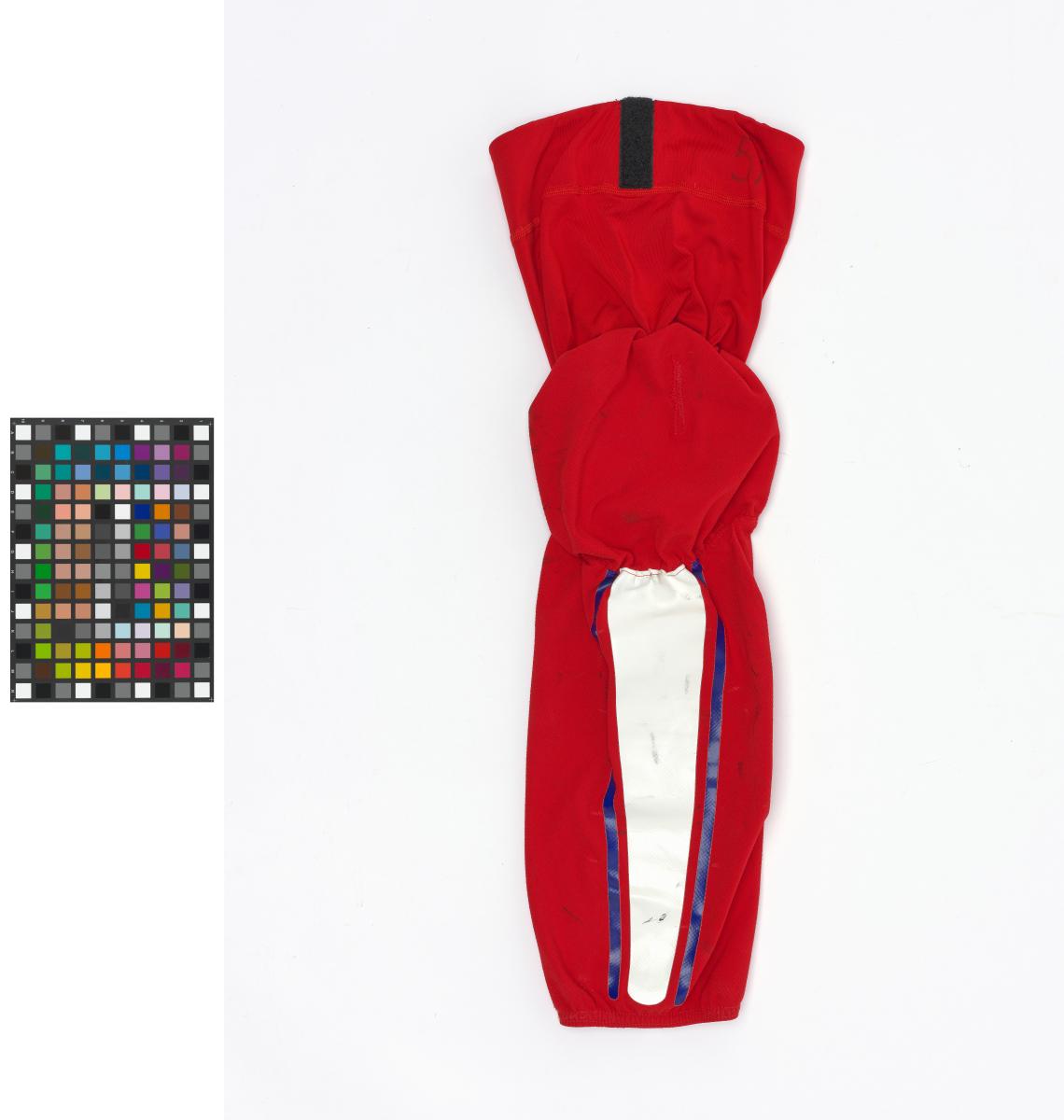 Bas de hockey sur glace rouges et blancs. N° 51 inscrit à la main.