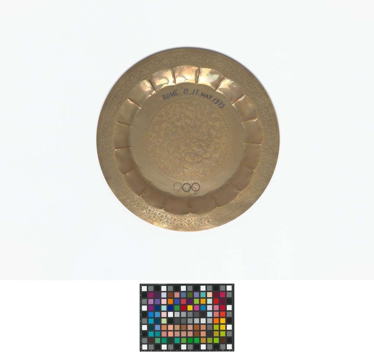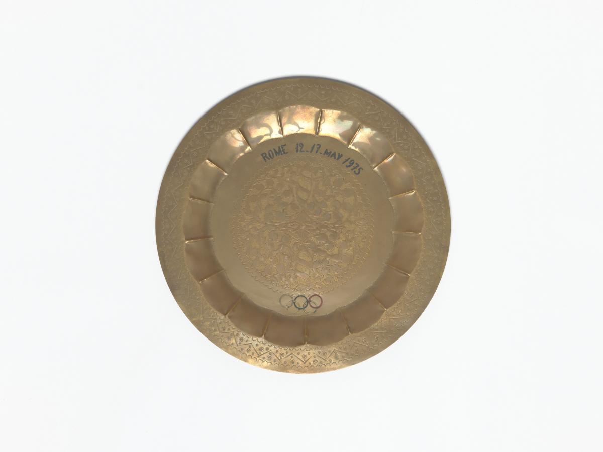 Rome 1975, plat commémoratif président au président du CIO Lord Killanin lors de la 18e réunion de la Commission Exécutive.