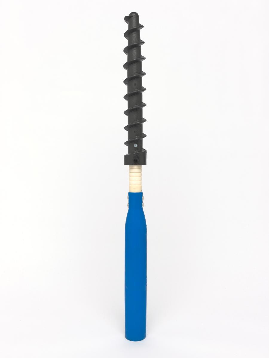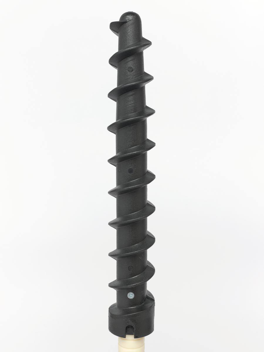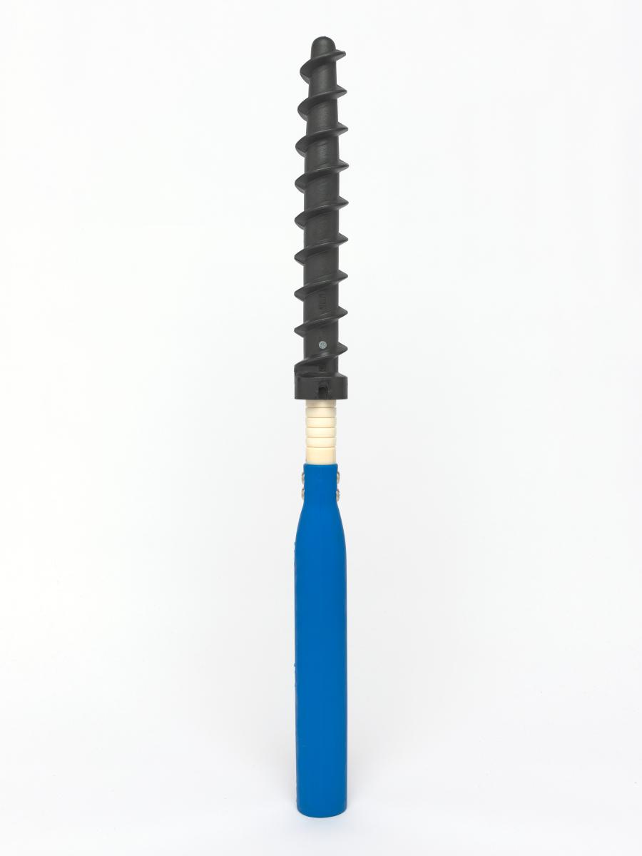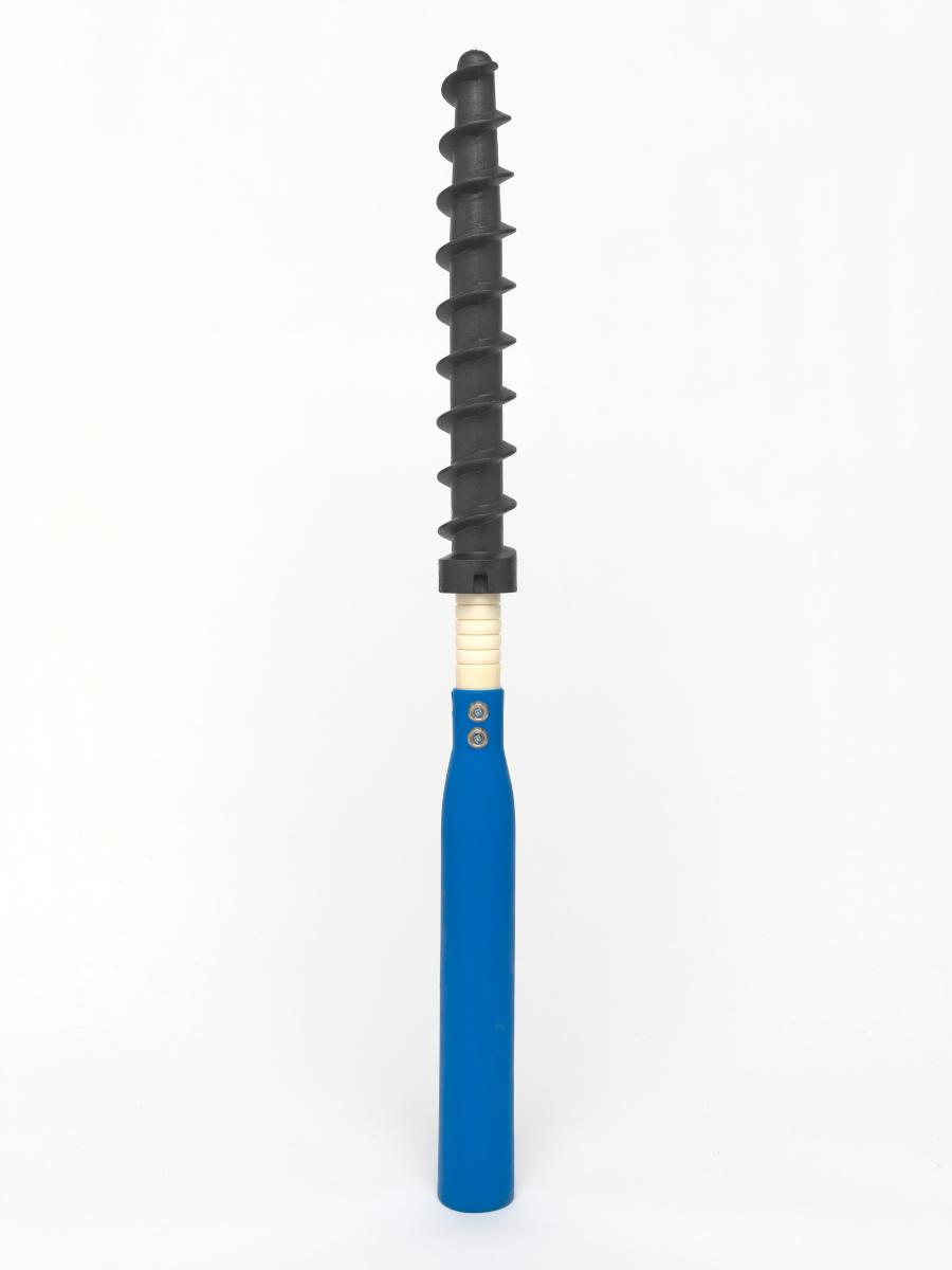 Montant avec pas de vis permettant de ficher le piquet fermement dans la neige.