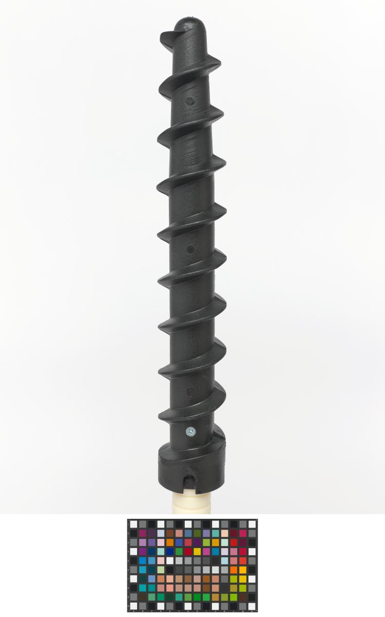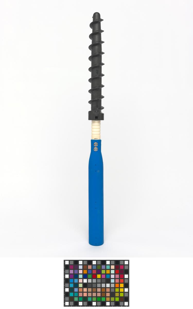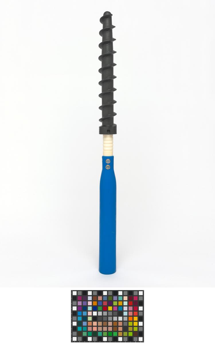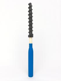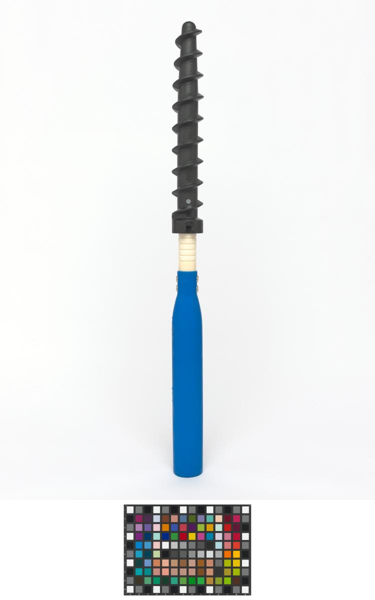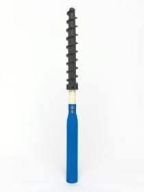 Montant avec pas de vis permettant de ficher le piquet fermement dans la neige.