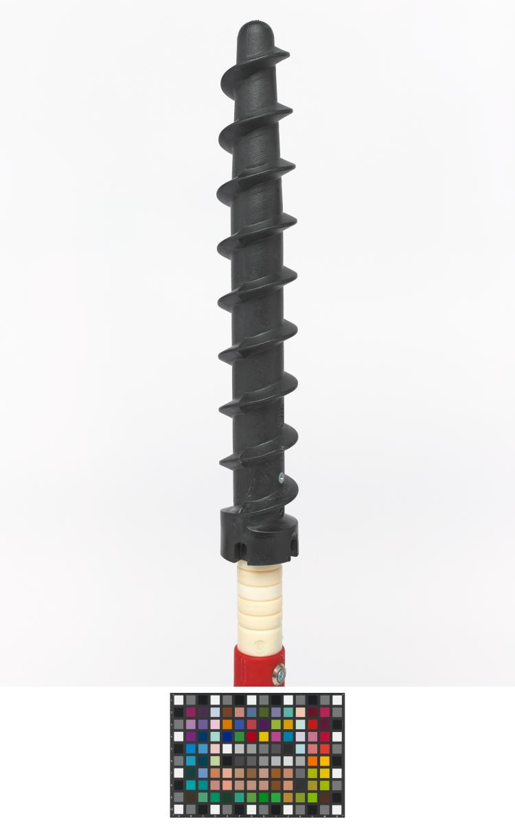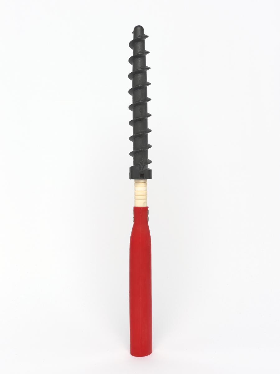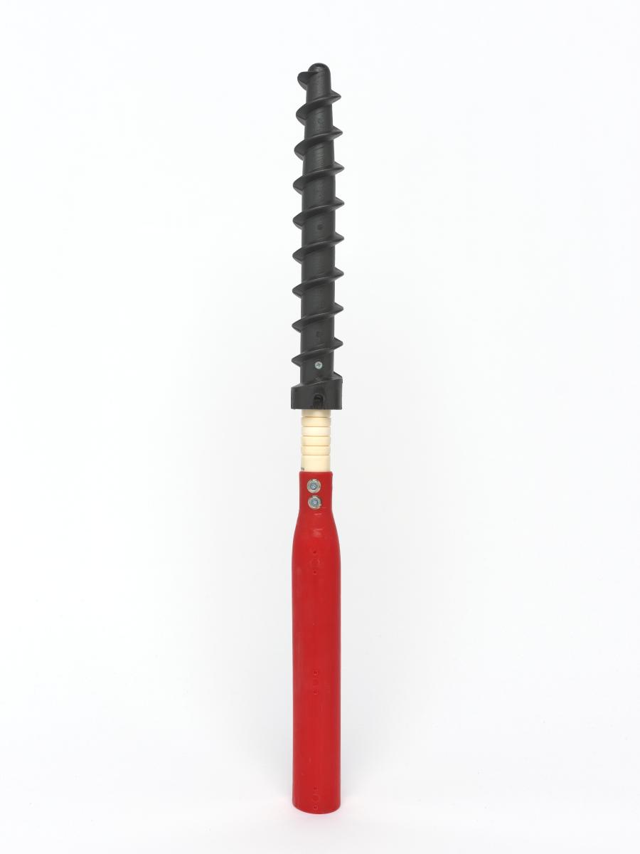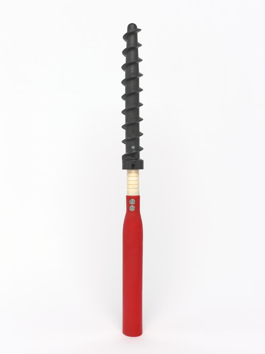 Montant avec pas de vis permettant de ficher le piquet fermement dans la neige.