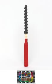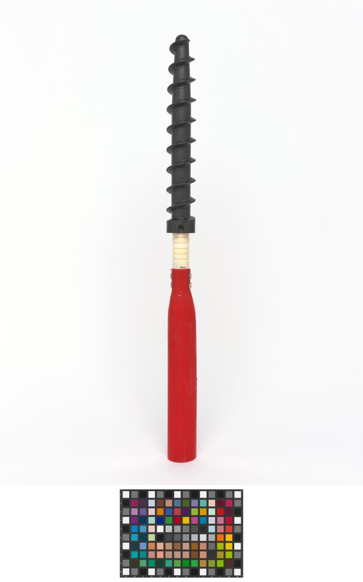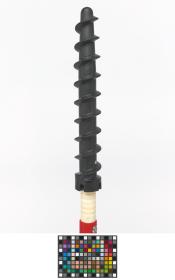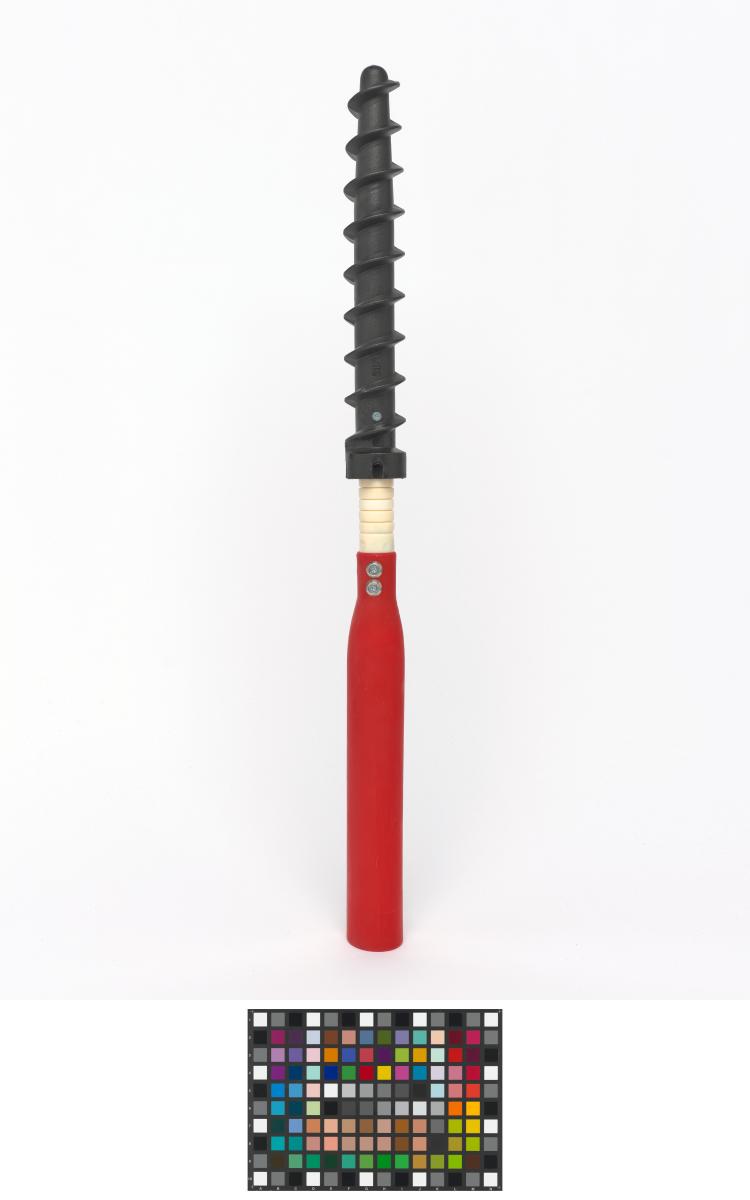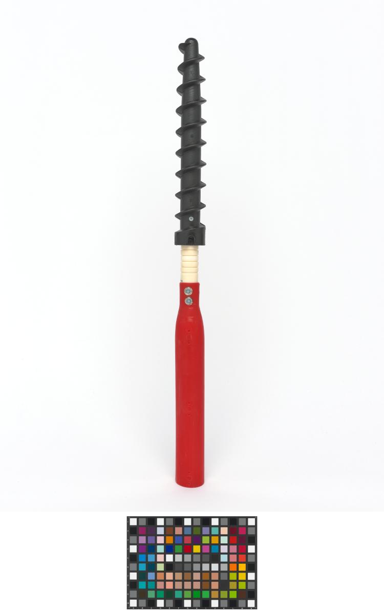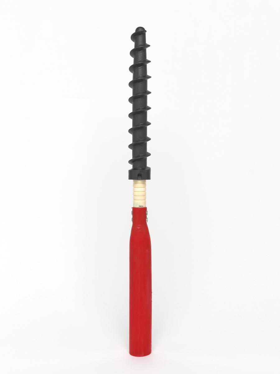 Montant avec pas de vis permettant de ficher le piquet fermement dans la neige.
