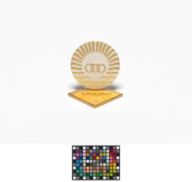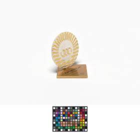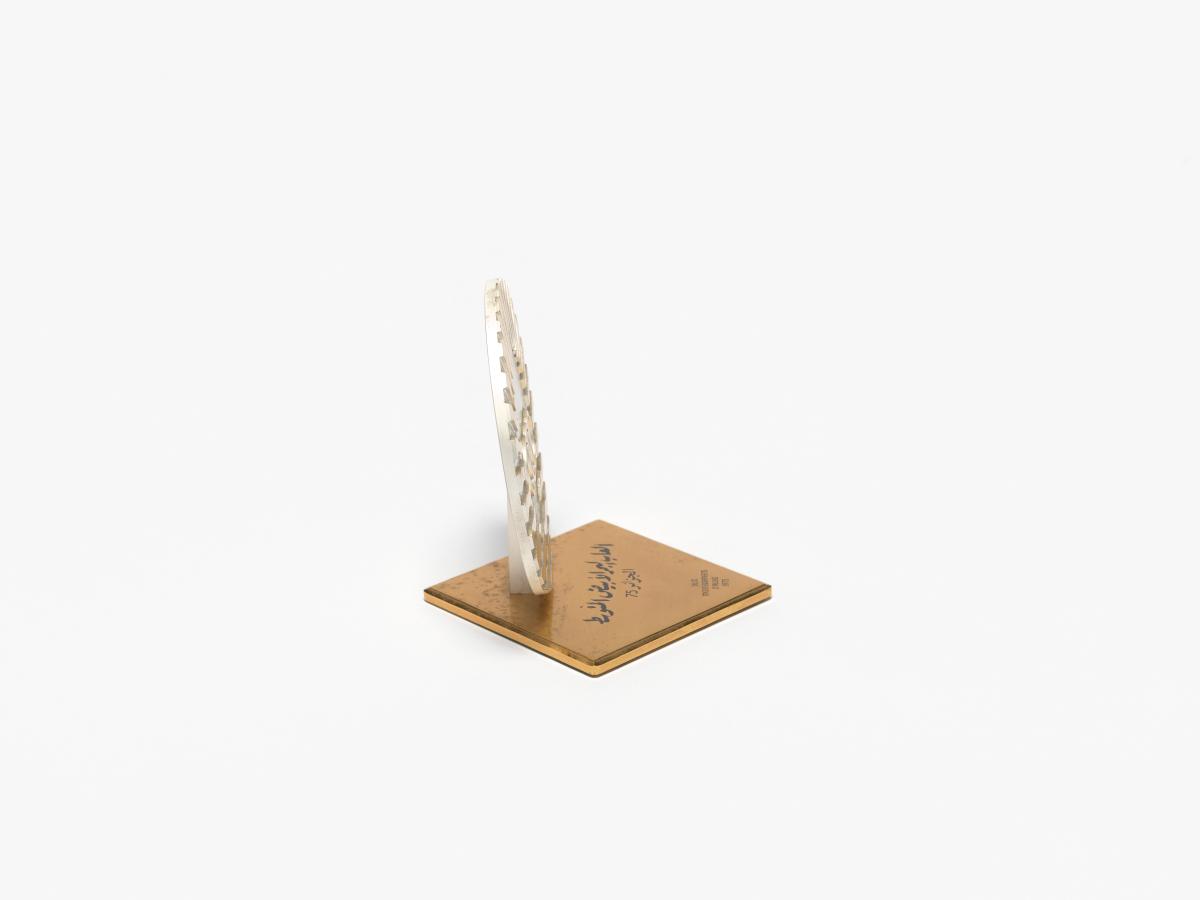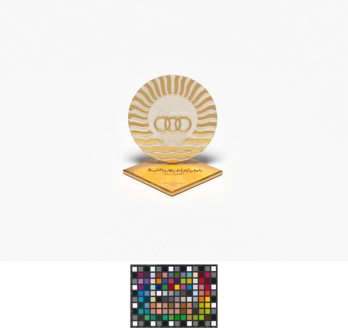 Emblème des Jeux sur plaque avec la légende: "75 Jeux Méditerranéens d'Alger".