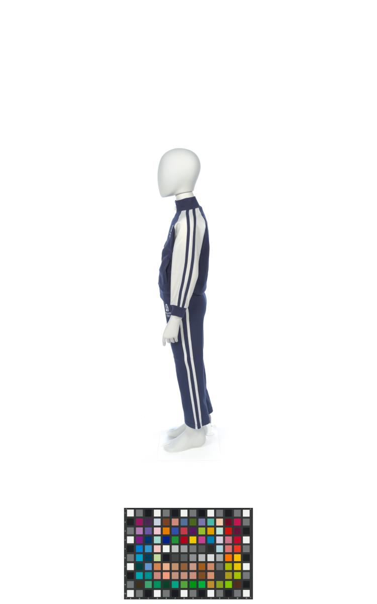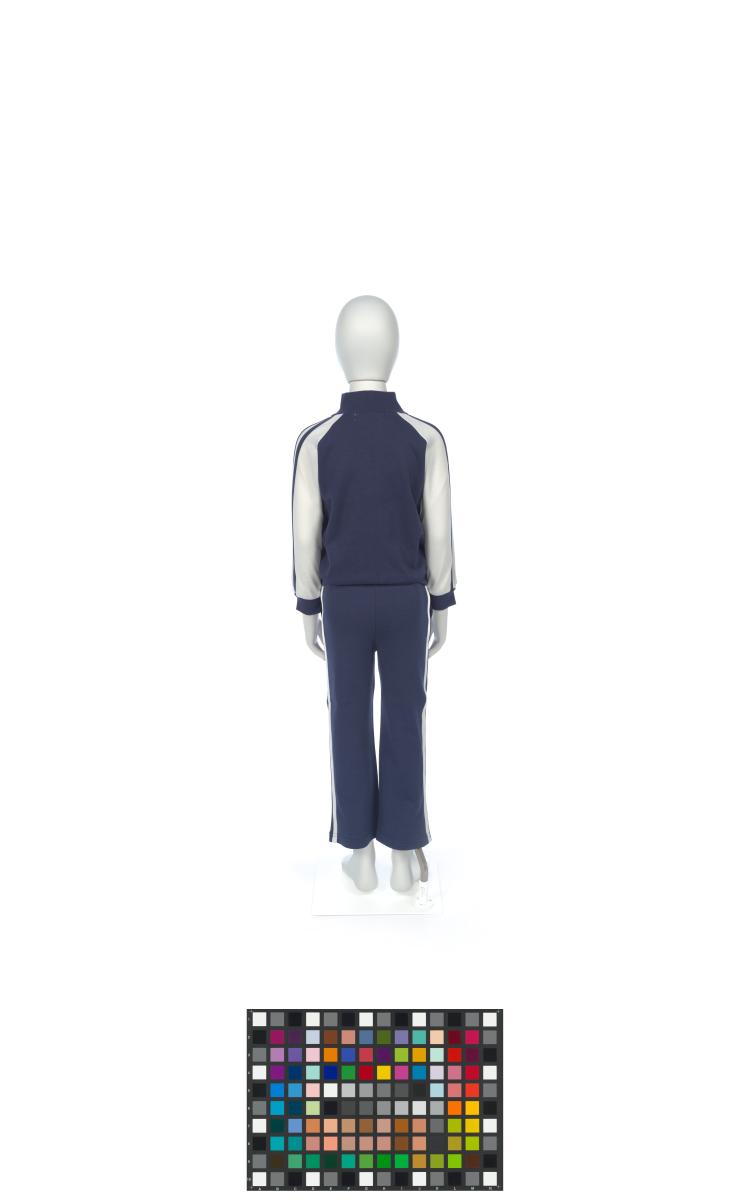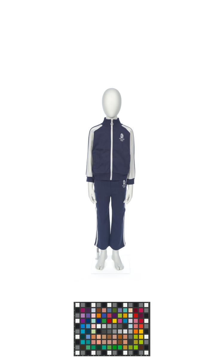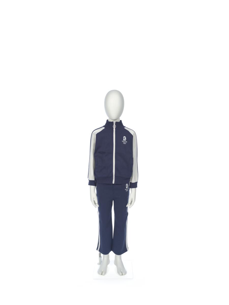 Survêtement (pantalon et veste) pour enfant, rayé, avec l'emblème des Jeux. Taille 110/56 (veste) et 110/54 (pantalon).