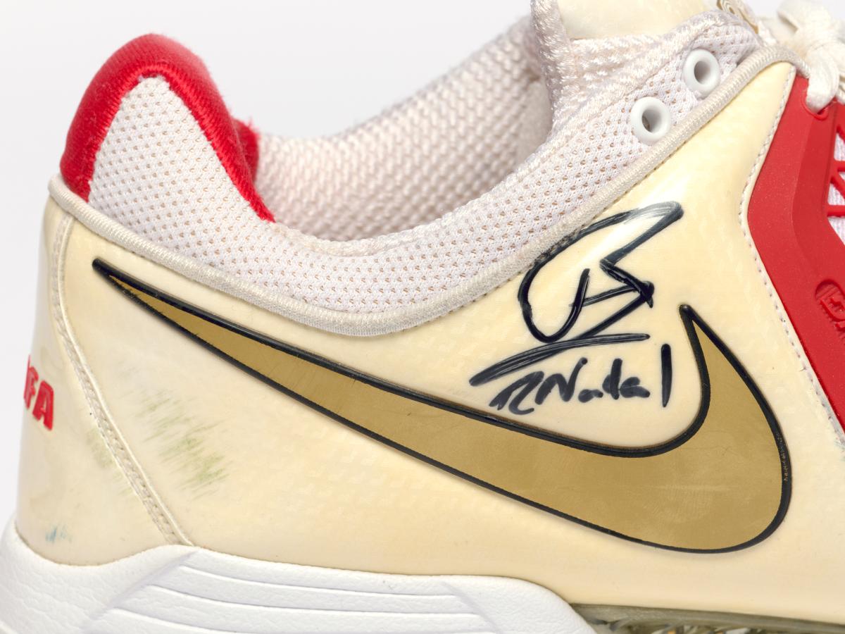 Beijing 2008, chaussures signées par Rafael NADAL (ESP), champion olympique, tennis simple.