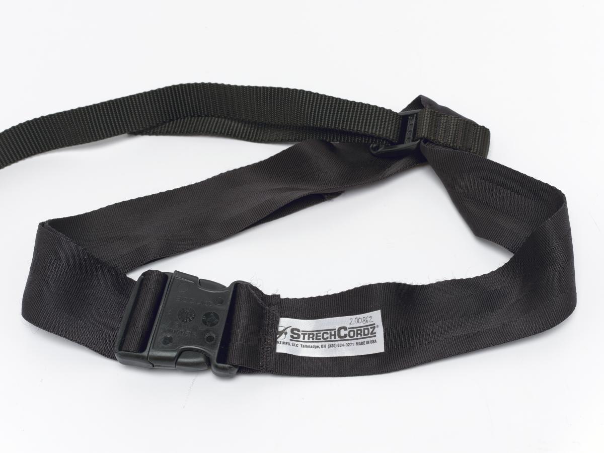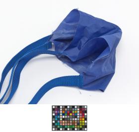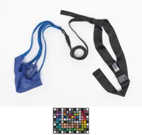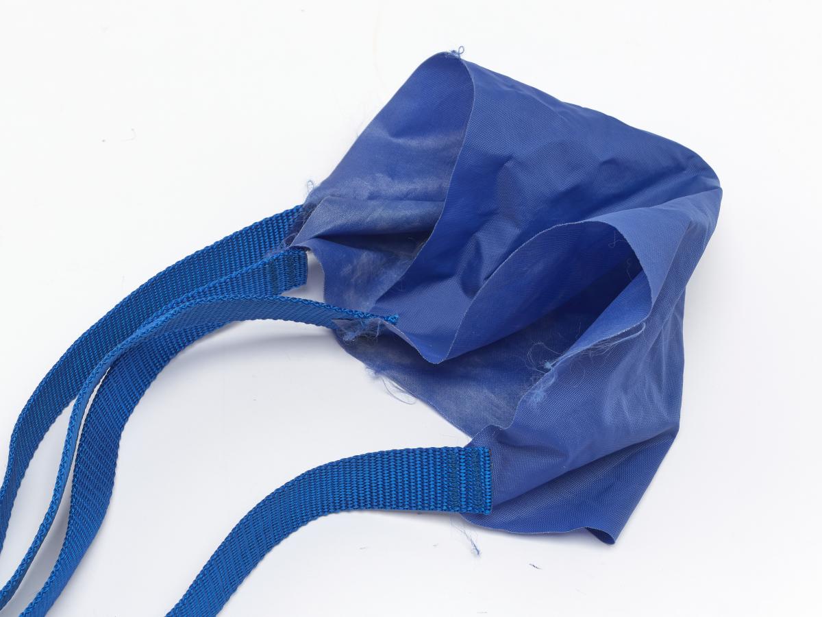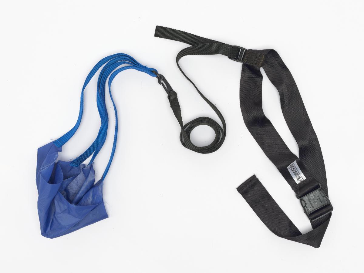 Ceinture-parachute bleu avec sangles noires.