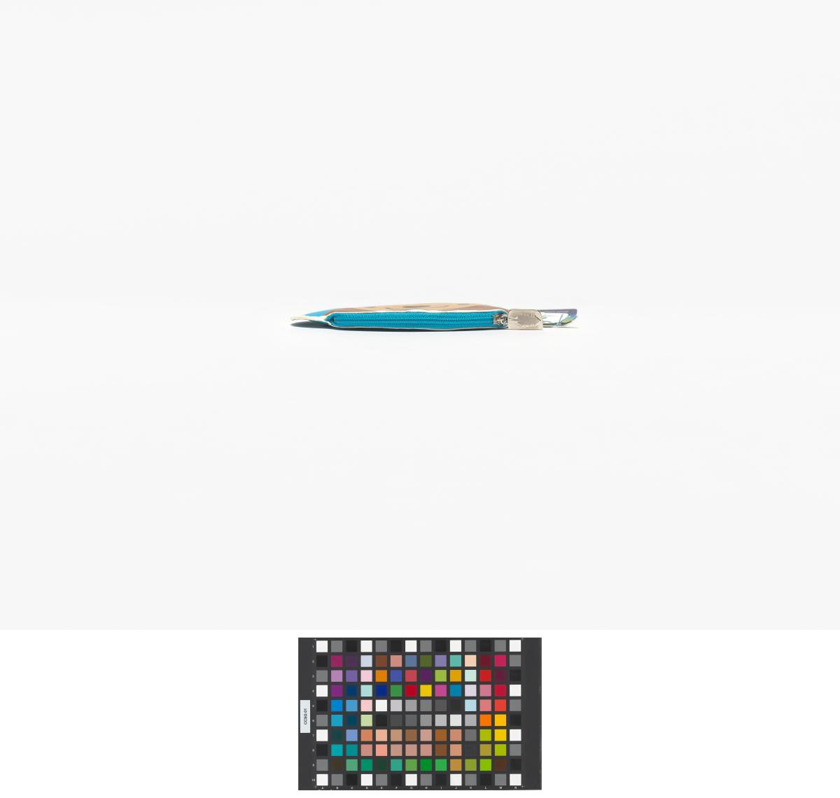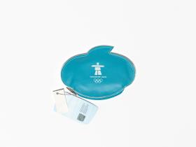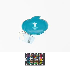 Porte-monnaie en cuir synthétique en forme de tête de Quatchi, avec l'emblème officiel des Jeux au dos. Un arbre est représenté sur le pendant de la fermeture-éclair.