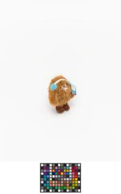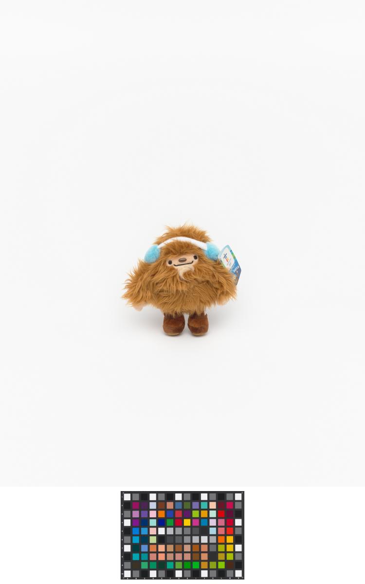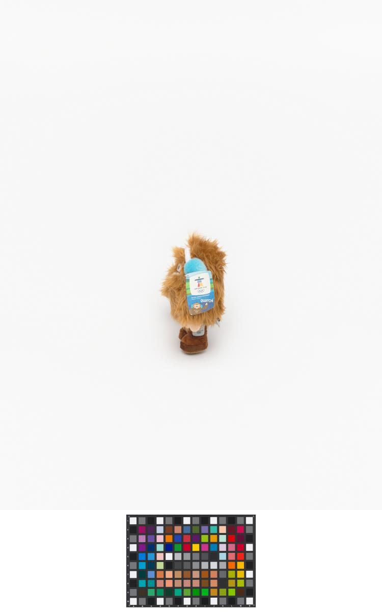 Mascotte en peluche des Jeux. Etiquette avec l'emblème officiel des Jeux sur la jambe gauche.