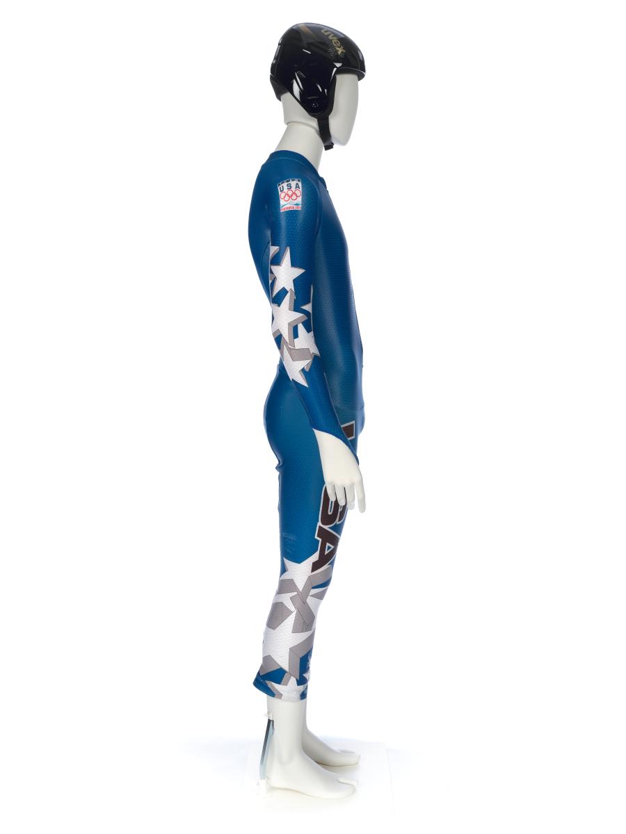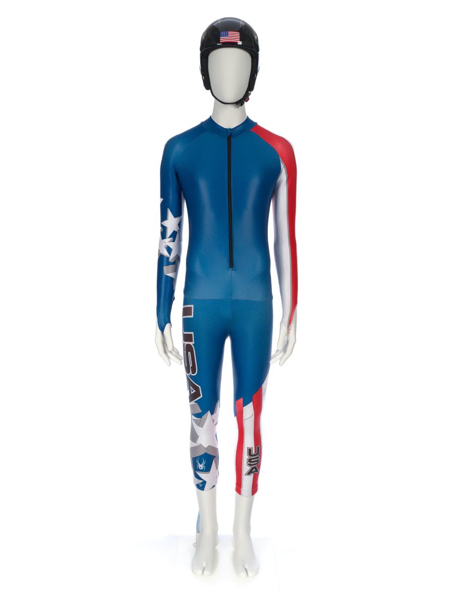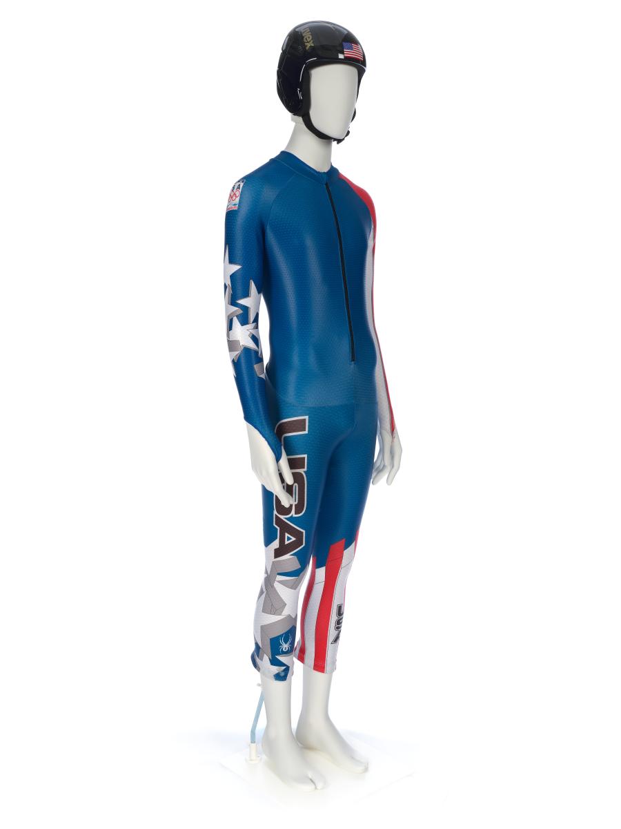 Equipement porté par Andrew Weibrecht lors du Super-G de Vancouver 2010. Il comporte une combinaison et un casque.