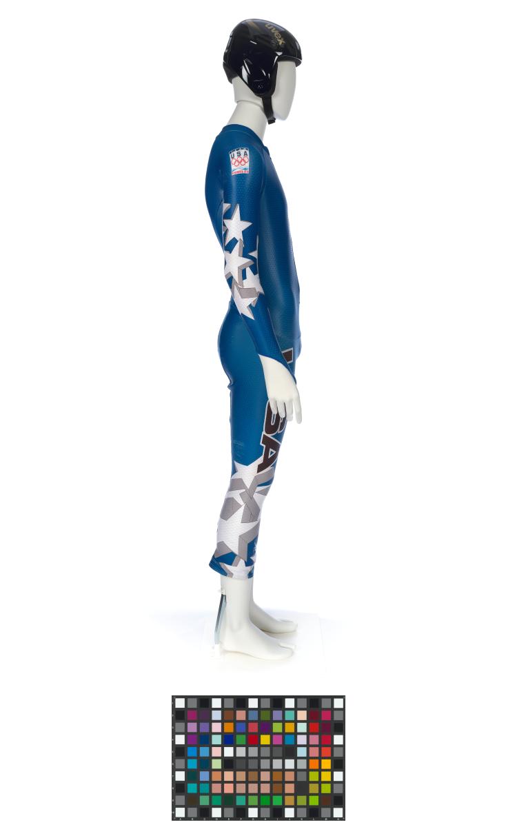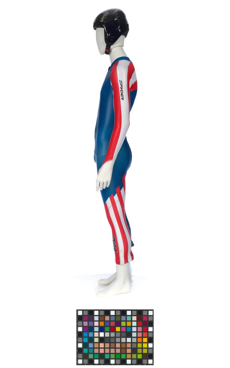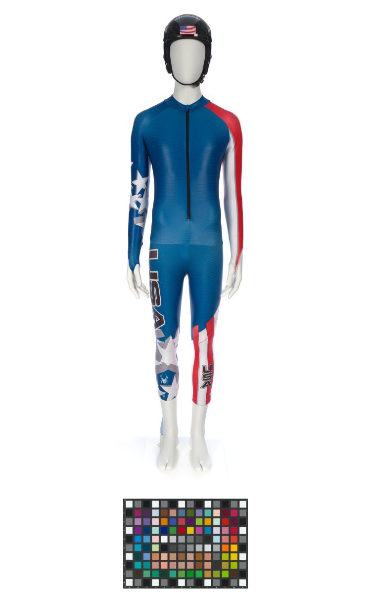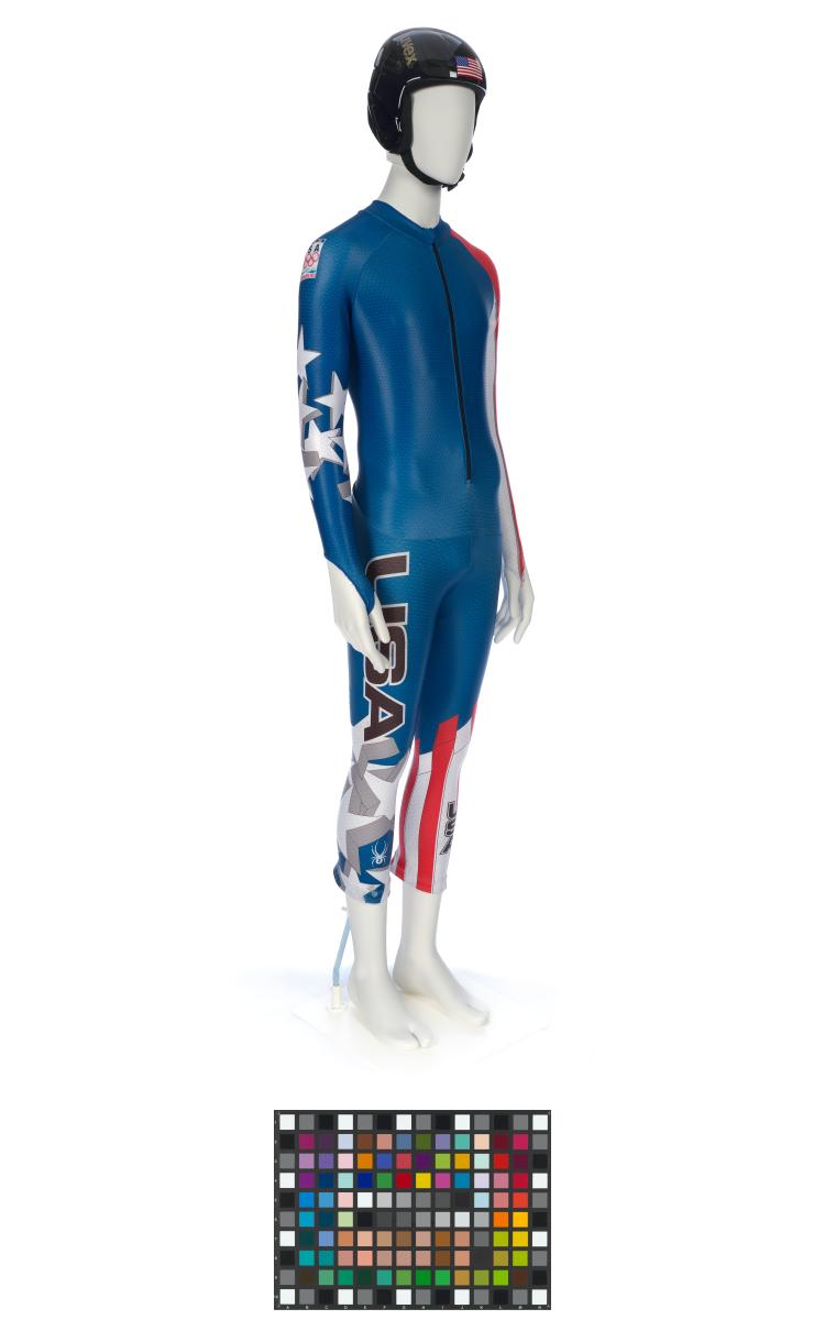 Equipement porté par Andrew Weibrecht lors du Super-G de Vancouver 2010. Il comporte une combinaison et un casque.