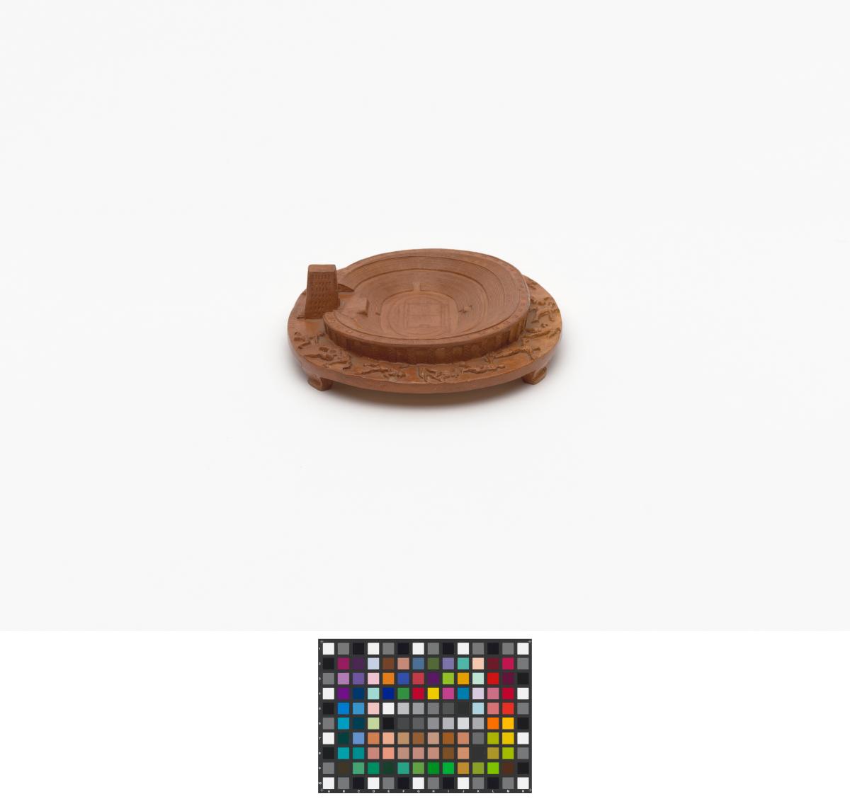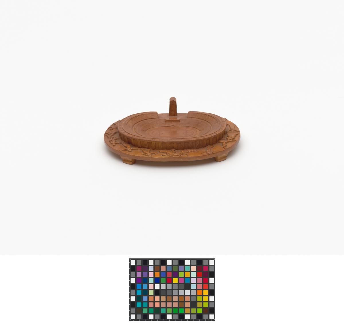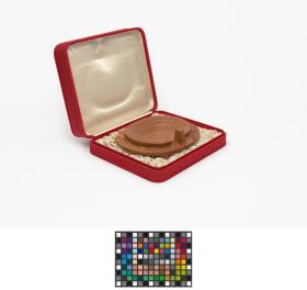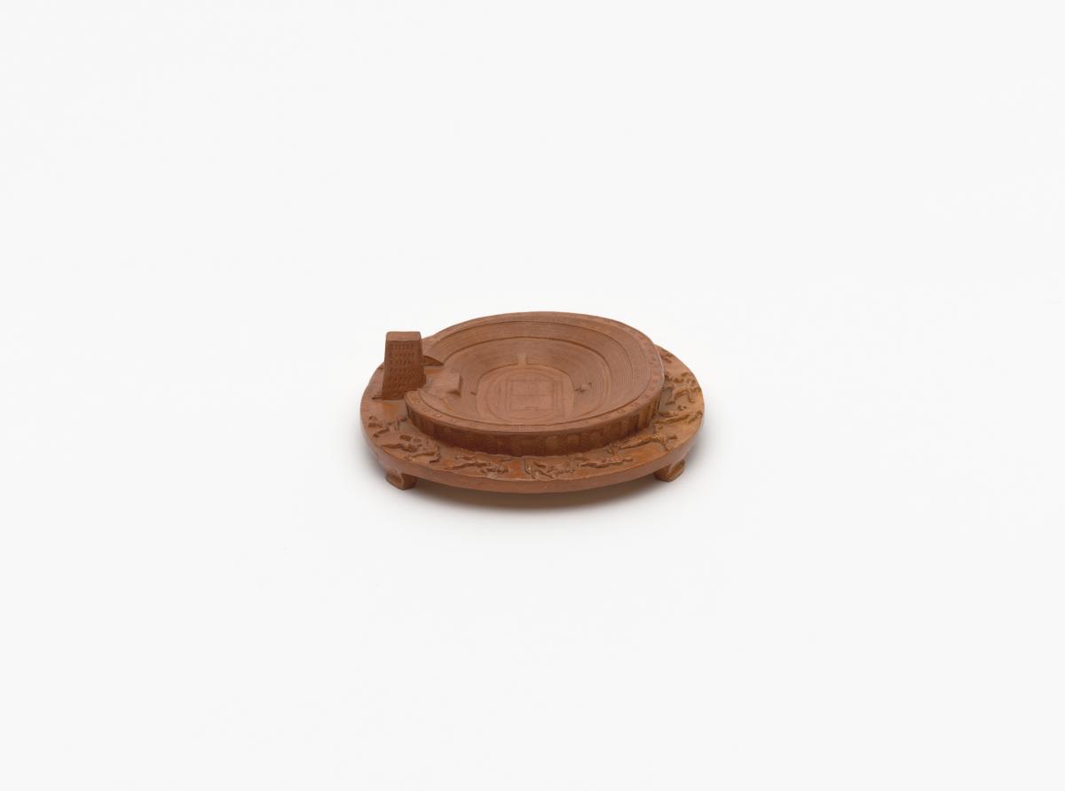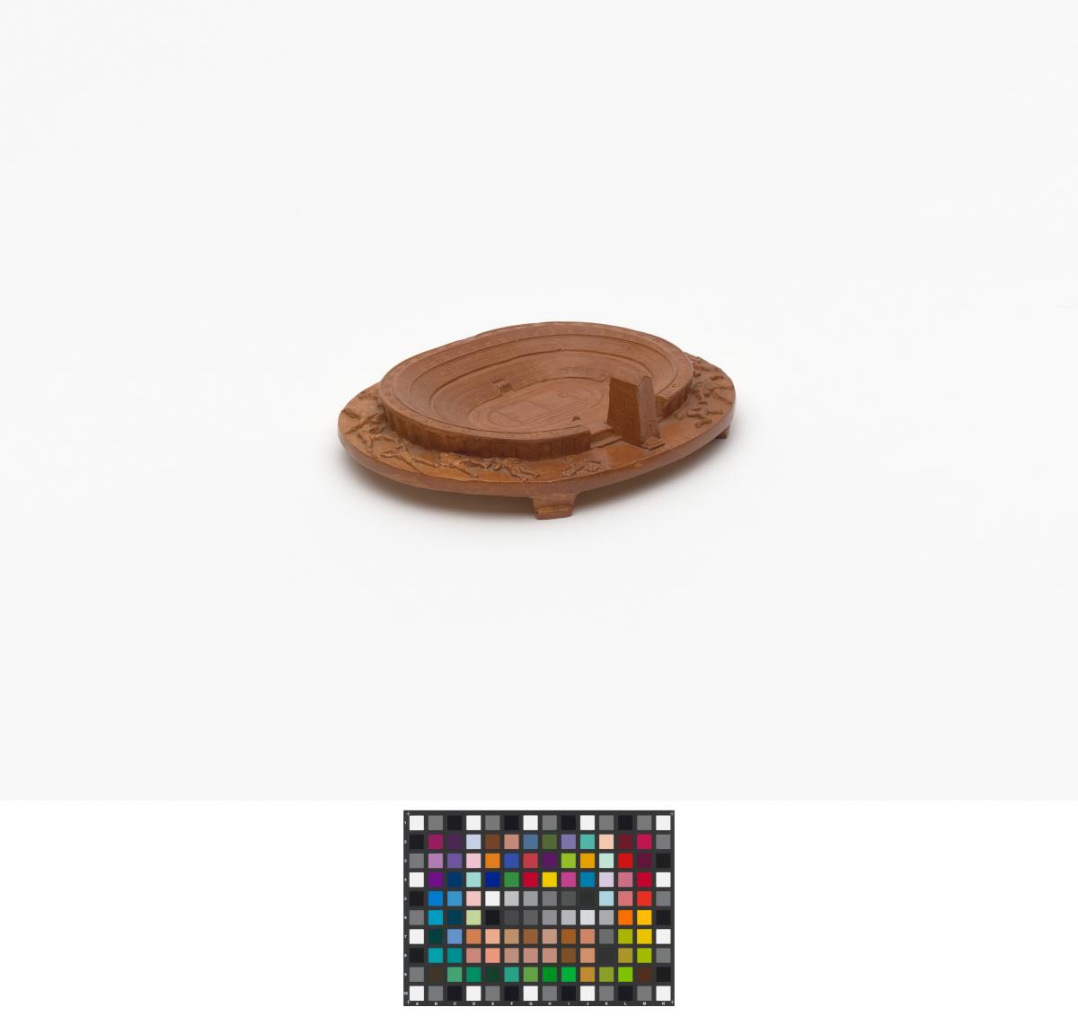 Maquette de taille réduite en terre cuite du Stade du Peuple (Népstadion en hongrois), entouré de scènes sportives. Timbre "Turkovi LANC Makbi (?)". Ecrin original.
