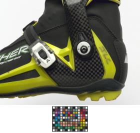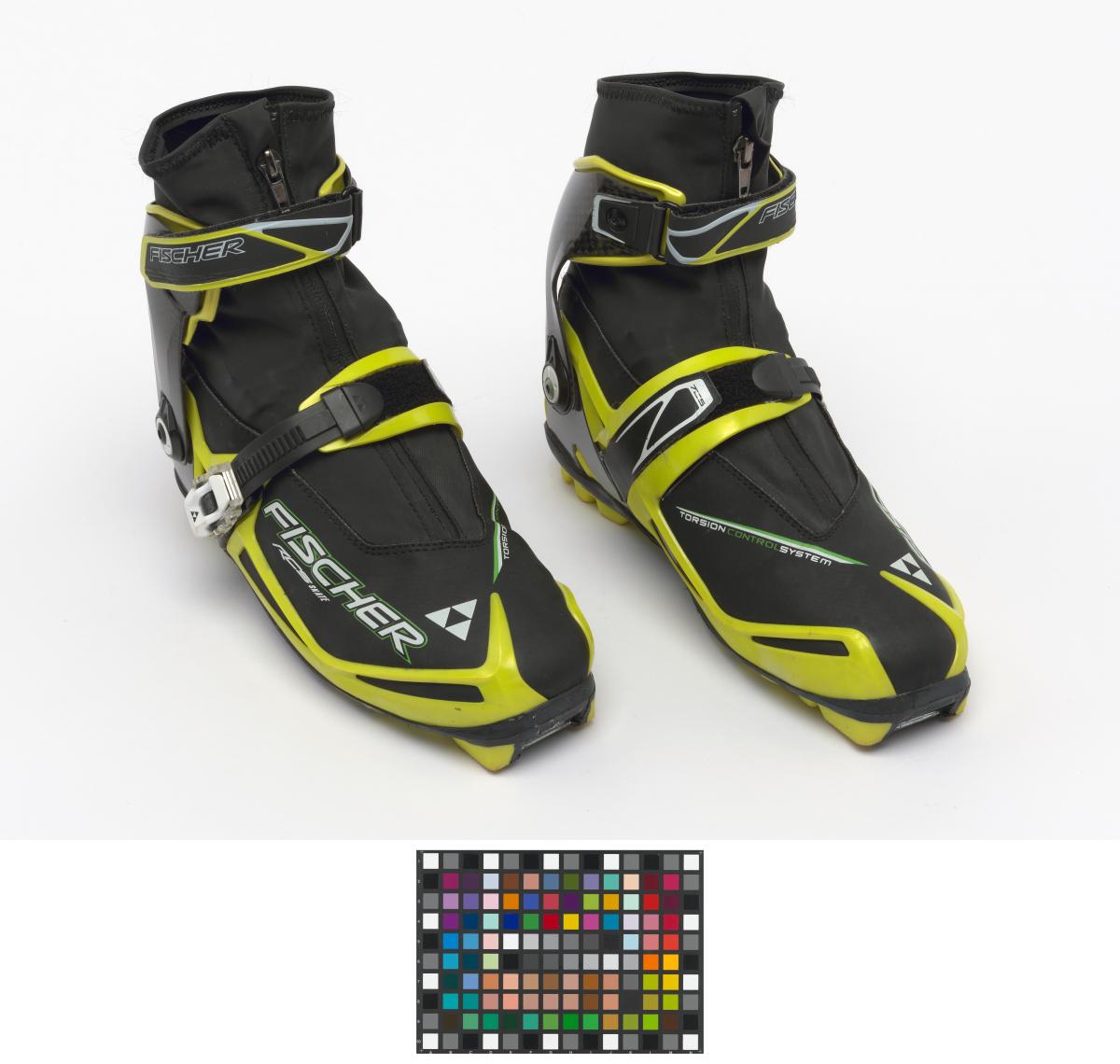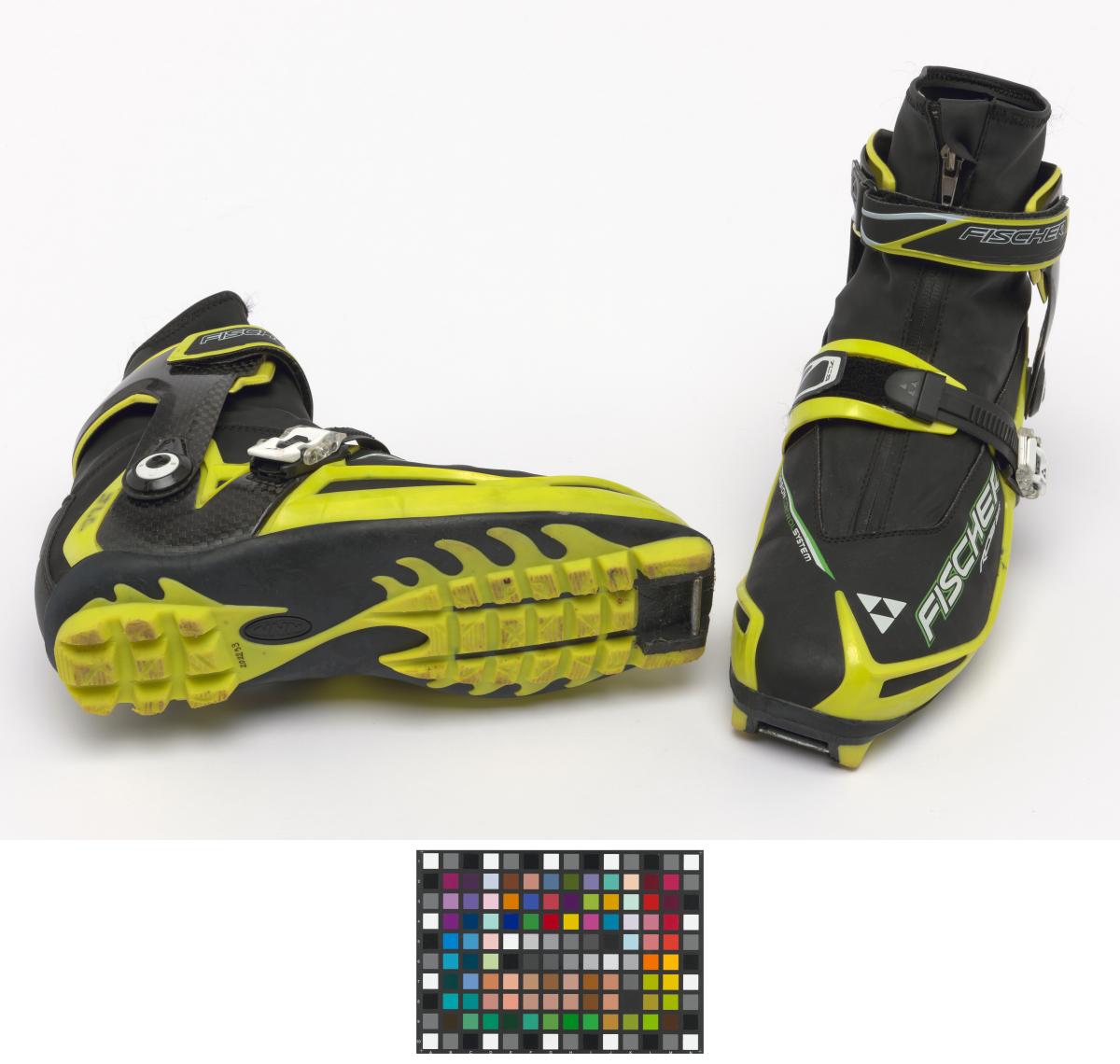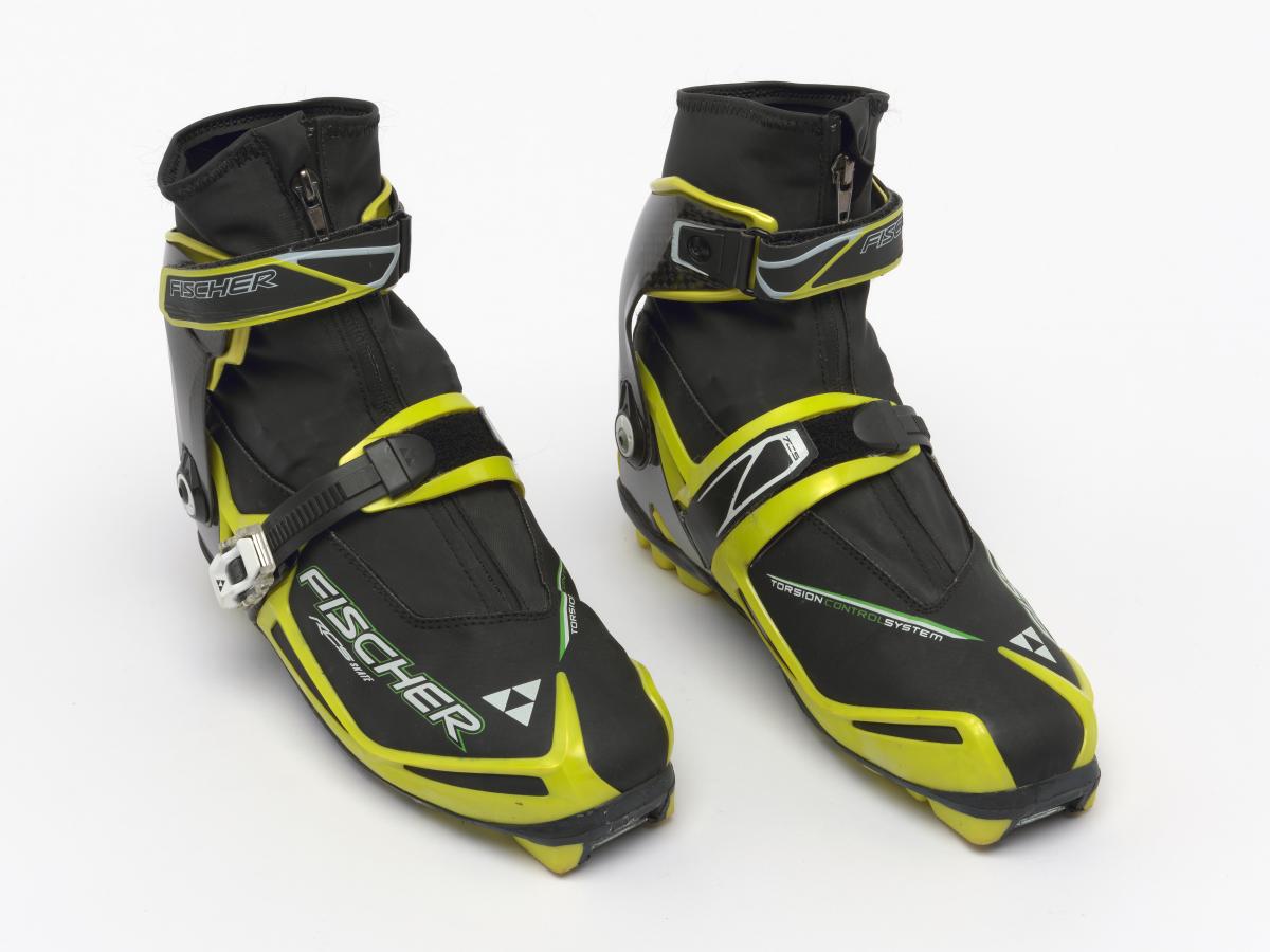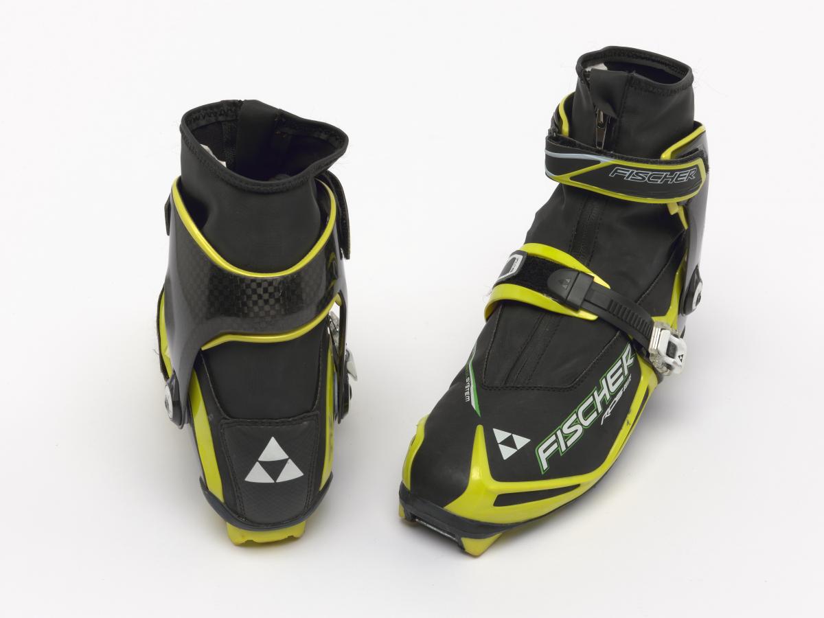 Vancouver 2010, paire de chaussures de ski de fond de Jason LAMY-CHAPPUIS (FRA), champion olympique de combiné nordique individuel, K90 (petit tremplin, 70m) /10km.