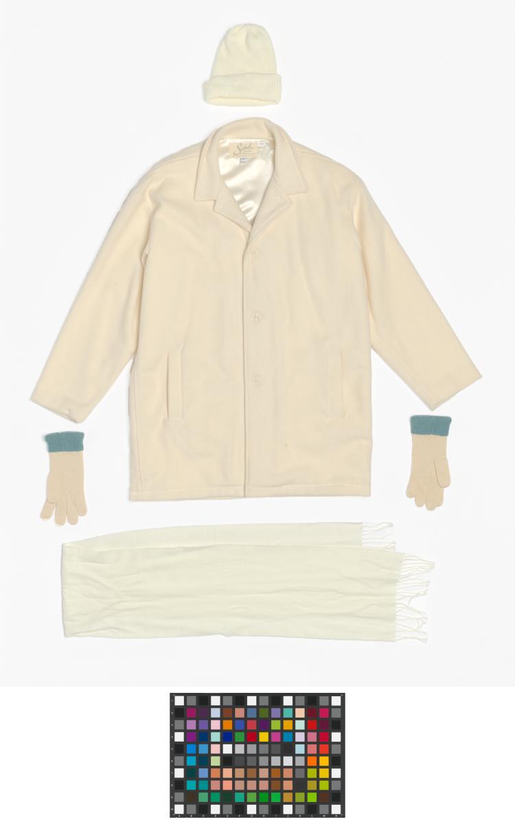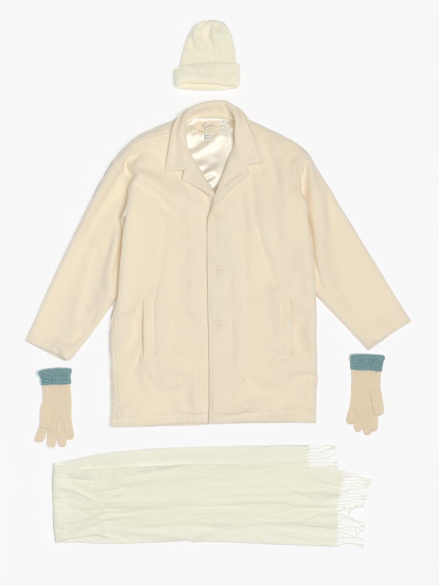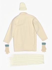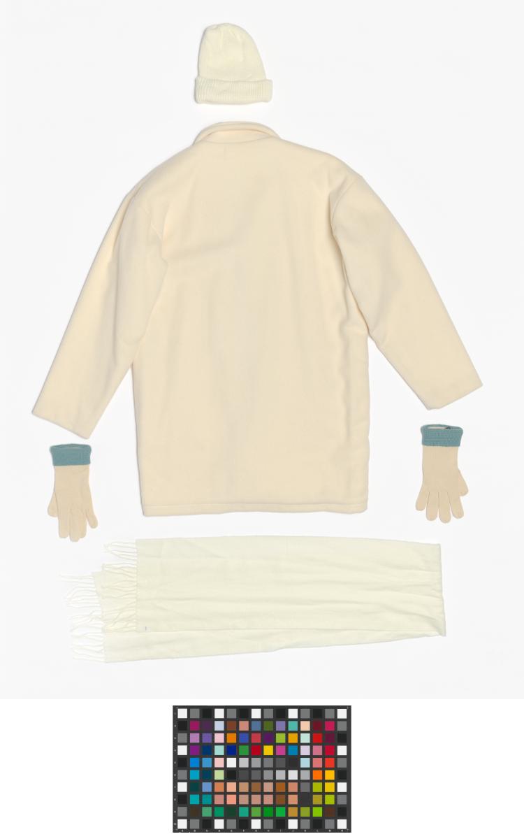 Ensemble constitué par une veste (94783), une écharpe (94784), des gants (94785) et un bonnet (94786). Manque un pantalon noir.