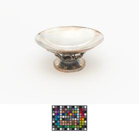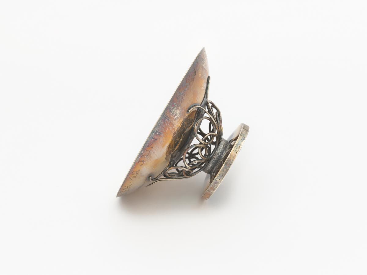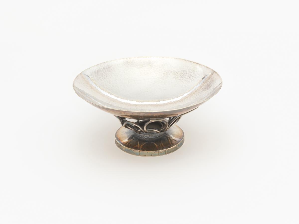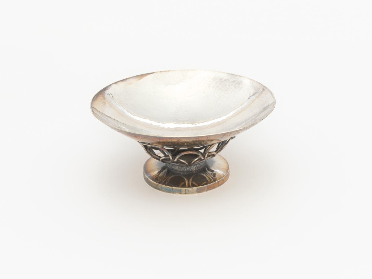 Coupelle en argent dont le pied est orné du symbole olympique. Légendes : 12 juni 1983 Juan Antonio Samaranch ; Islands fra olympunefnd”.