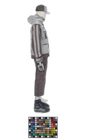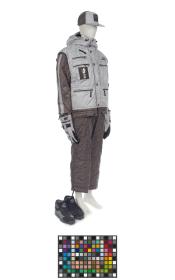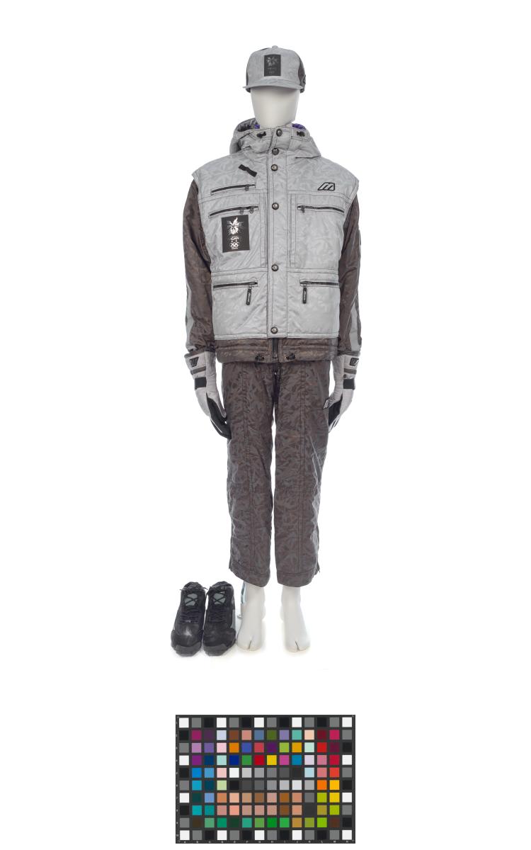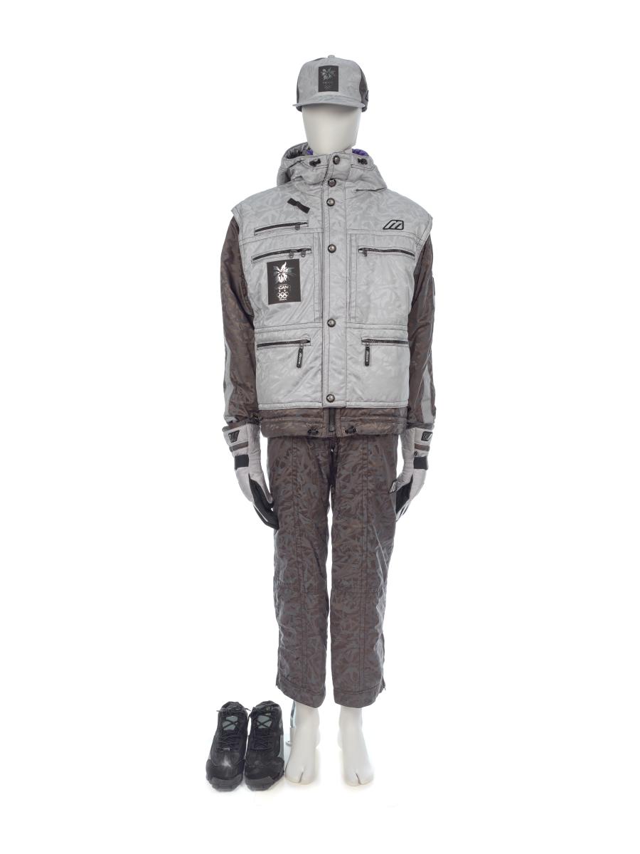 Ensemble composé d'une veste, d'une paire de pantalons, d'une casquette, d'une paire de gants et d'une paire de chaussures.