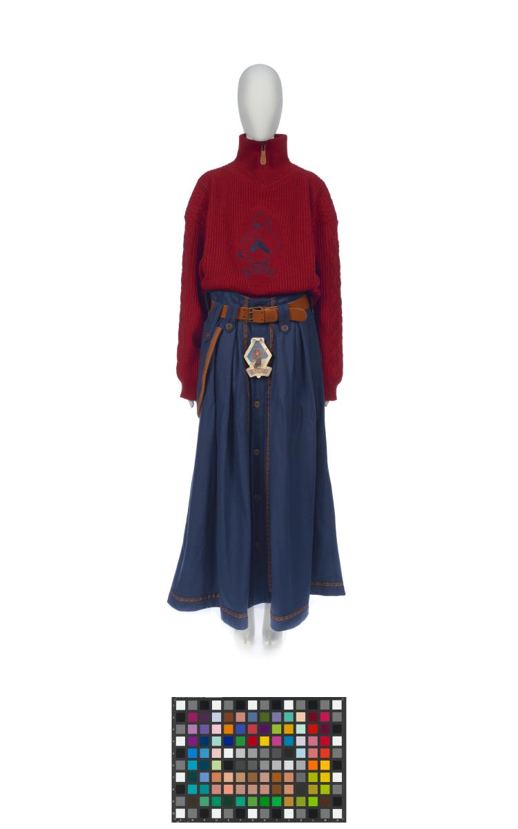 L'uniforme est constitué par un pullover (63020) de taille M, des gants (63024), un chapeau (63026), une veste (63037) de taille L et une jupe (63041) de taille M.