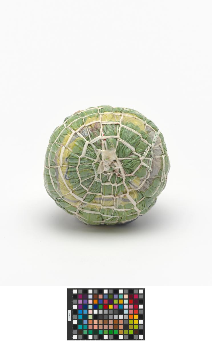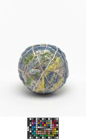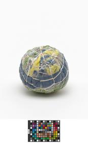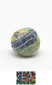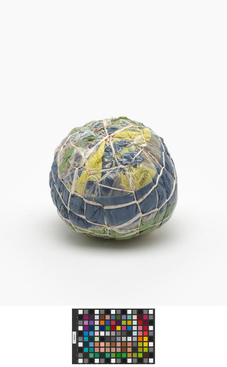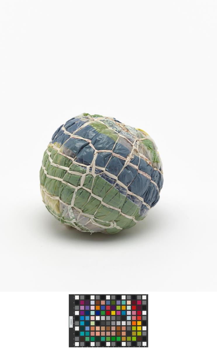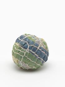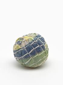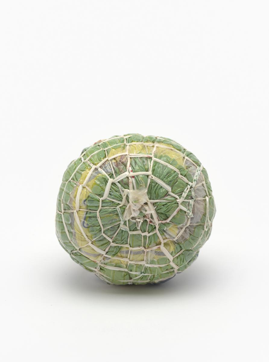 Ballon fait de sacs en plastique compressés par des ficelles.