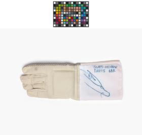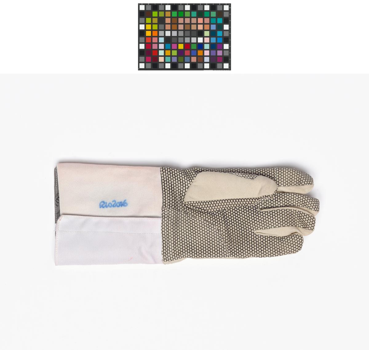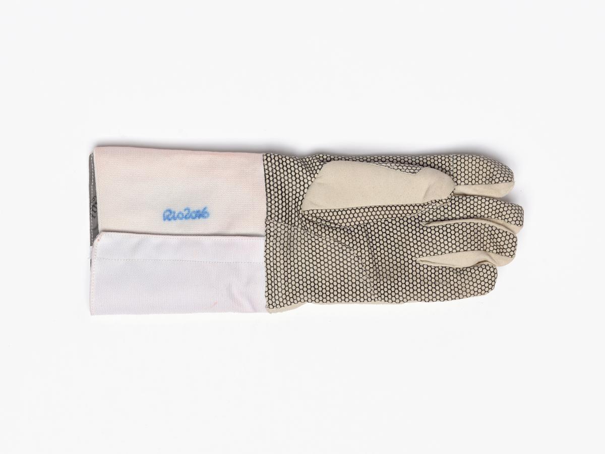 Gant d'escrime avec le tampon de Rio 2016 et la signature de l'athlète. Taille 10 1/2.