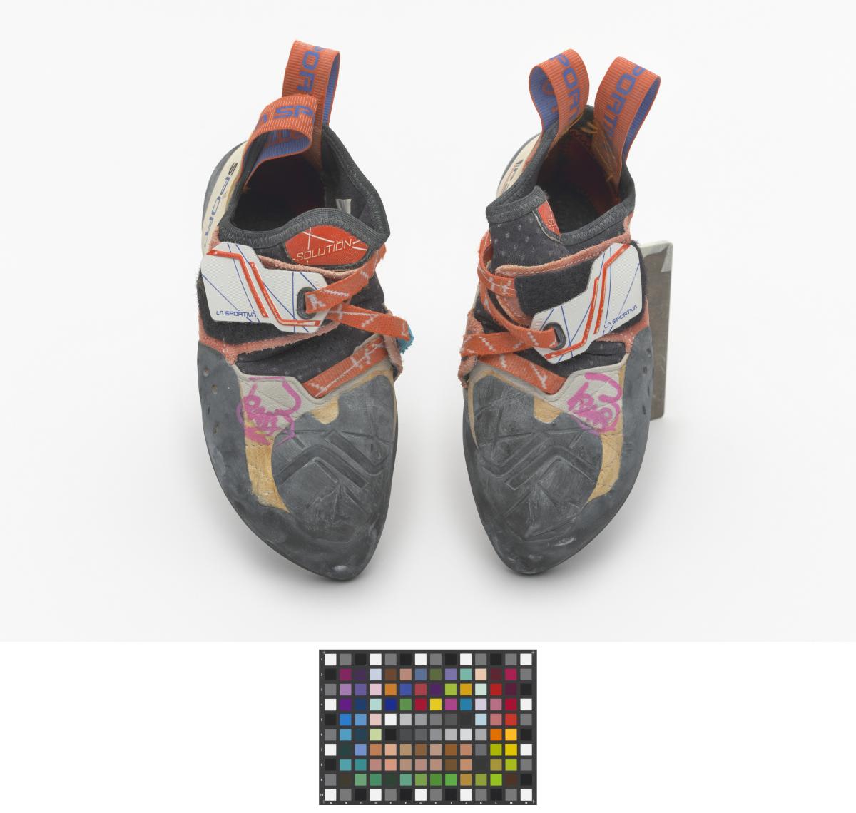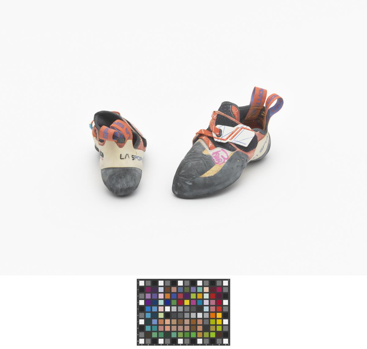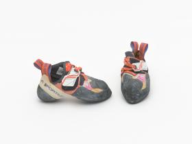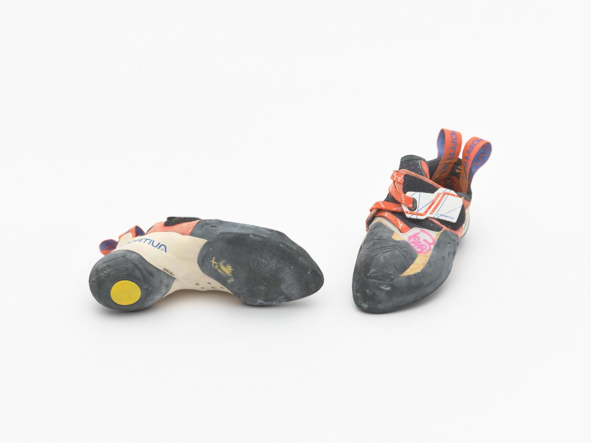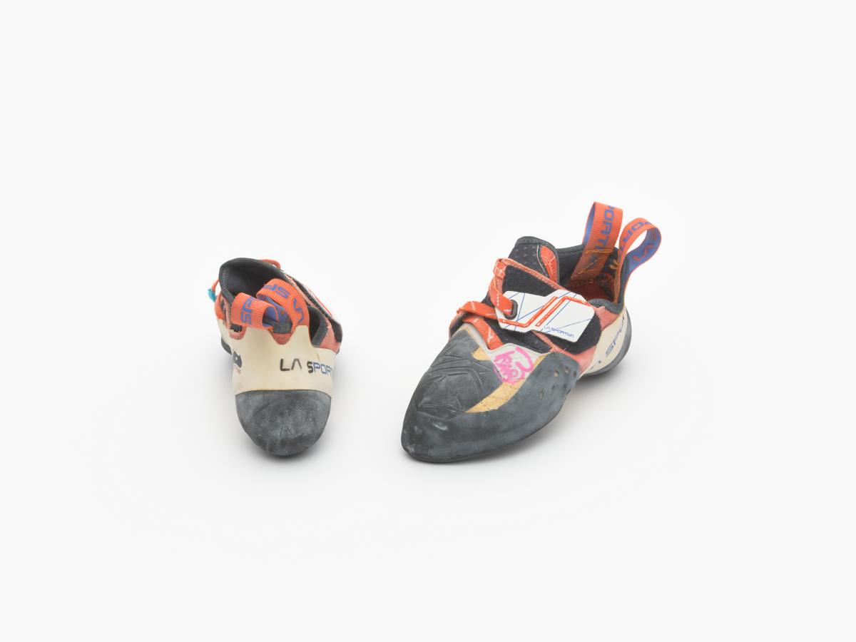 Paris 2024, chaussons d'escalade signés par Brooke RABOUTOU (USA), médaillée d'argent de l'épreuve du combiné.