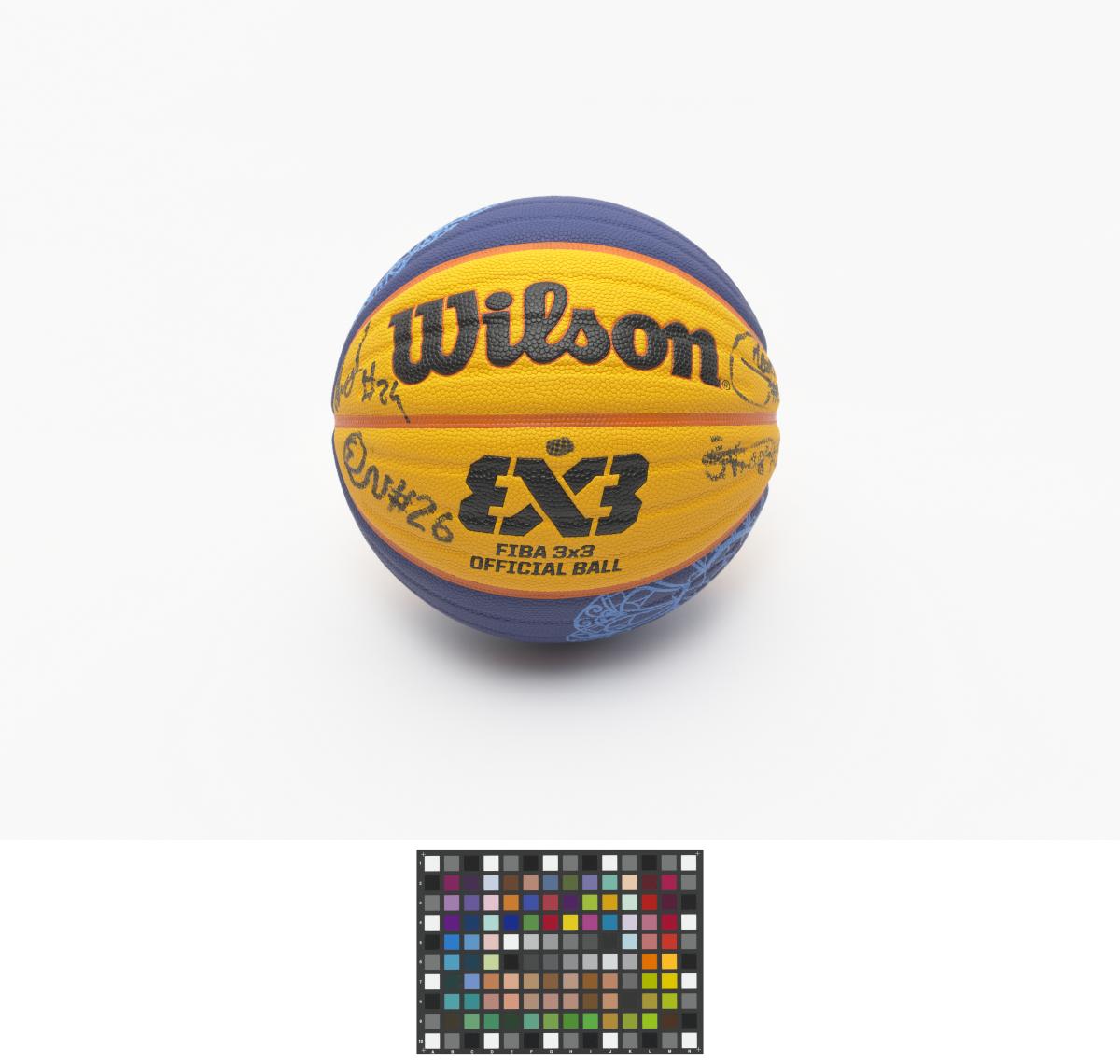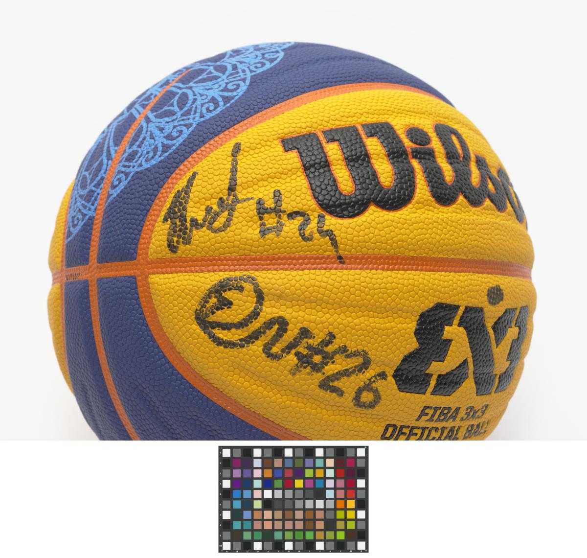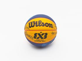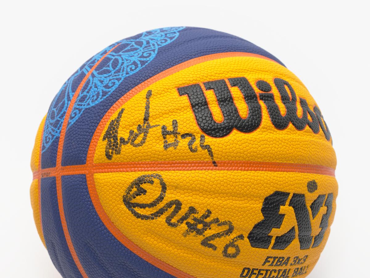 Ballon de basket 3x3 de la Wilson, signé par une équipe masculine.