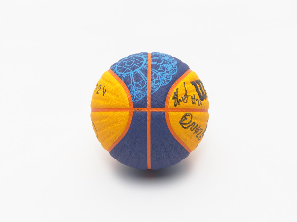 Paris 2024, ballon de basket 3x3 masculin signé.