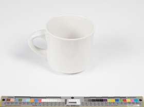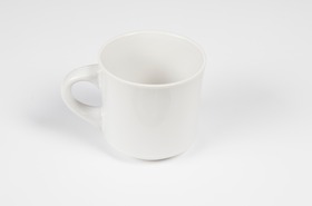 Tasse blanche en céramique avec l'emblème des Jeux.
